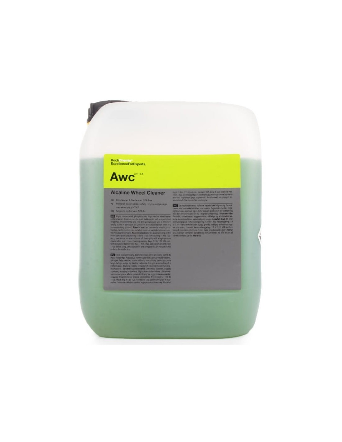 Koch Chemie Alcali Wheel Cleaner to profesjonalny, zasadowy środek do intensywnego czyszczenia felg stalowych i aluminiowych. Skutecznie usuwa tłuste zabrudzenia, pył hamulcowy i zanieczyszczenia drogowe, a przy tym jest bezpieczny dla powierzchni odpornych na działanie zasad. Idealny do zastosowań profesjonalnych – w myjniach, studiach detailingowych oraz w warunkach flotowych.