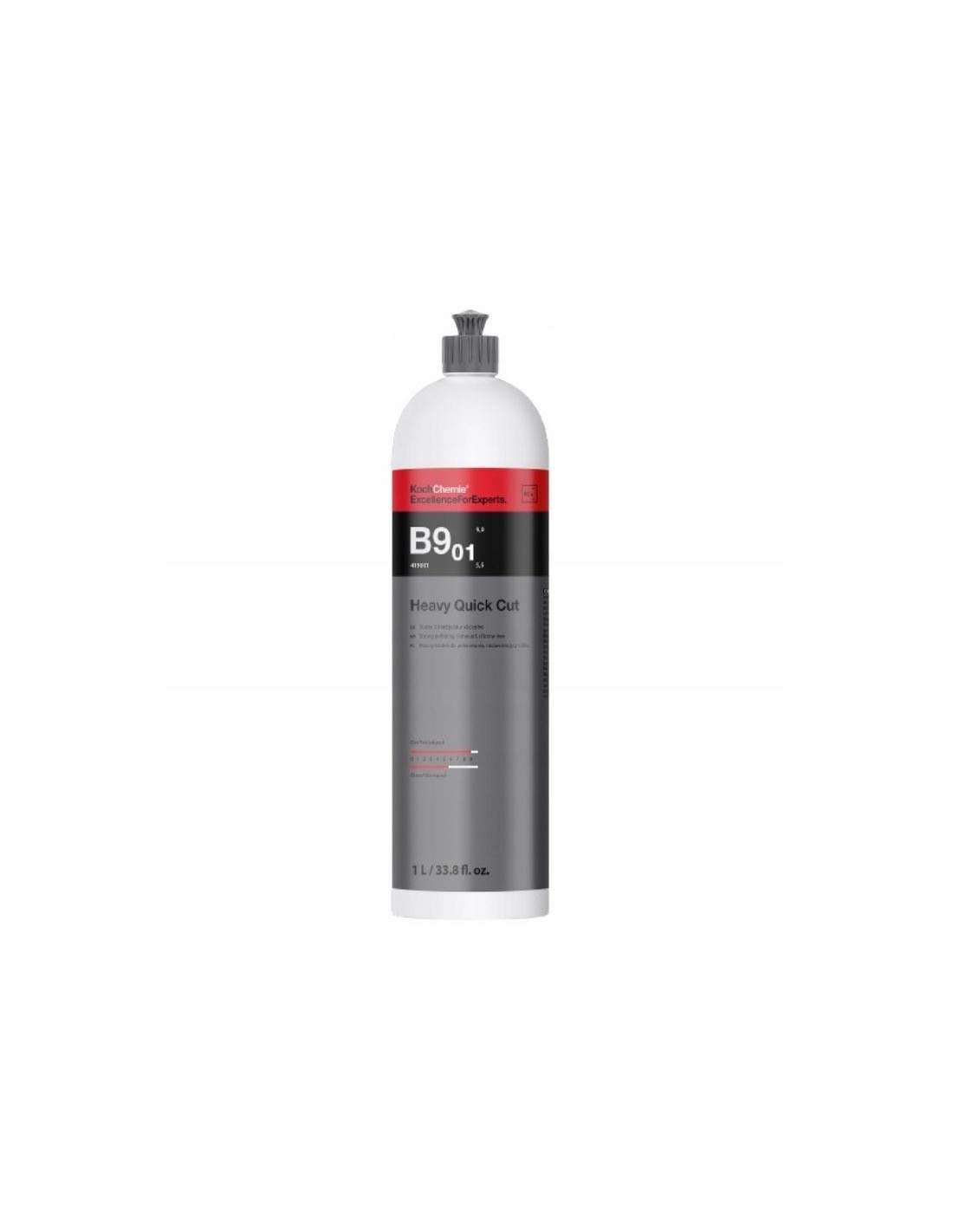 Koch Chemie B9.01 innowacyjna pasta polerska do maszynowego szybkiego polerowania bardzo wyblakniętych lakierów, do usuwania głębokich zarysowań i skutecznego usuwania tzw. mgły lakierniczej, a także zgładów i zmatowień po papierze o gradacji aż do P1200.