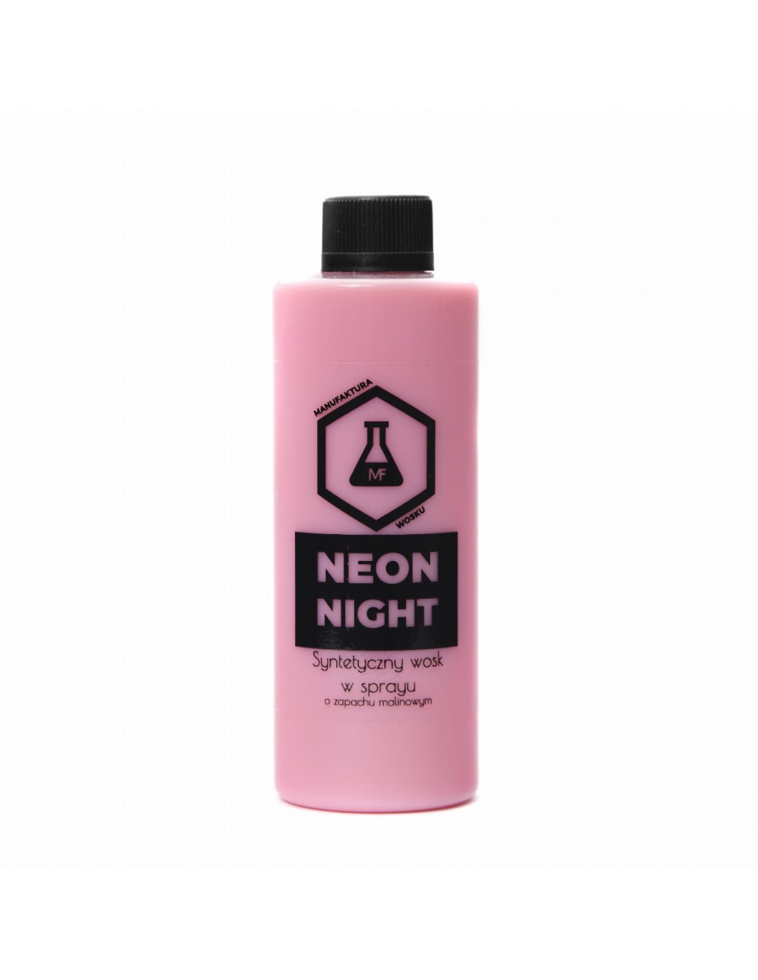Manufaktura WoskuManufaktura Wosku Neon Night – syntetyczny wosk w sprayu o zapachu malin do impregnacji lakierów metalizowanych, akrylowych a także matowych oraz folii. Wysoki połysk oraz zabezpieczenie z trwałością do kilku tygodni. Poza wet looki'iem Neon Night zapewnia także znakomite odpychanie wody oraz brudu. Długość działania produktu zależna od sposobu aplikacji oraz przygotowania powierzchni. Najlepszą metodą jest aplikowanie na oczyszczony lakier za pomocą rozpylonego płynu naniesionego na mikrofibrę, następnie rozprowadzić na lakierze i delikatnie dotrzeć. Produkt nie pozostawia po wyschnięciu białego nalotu na plastikach oraz gumach.