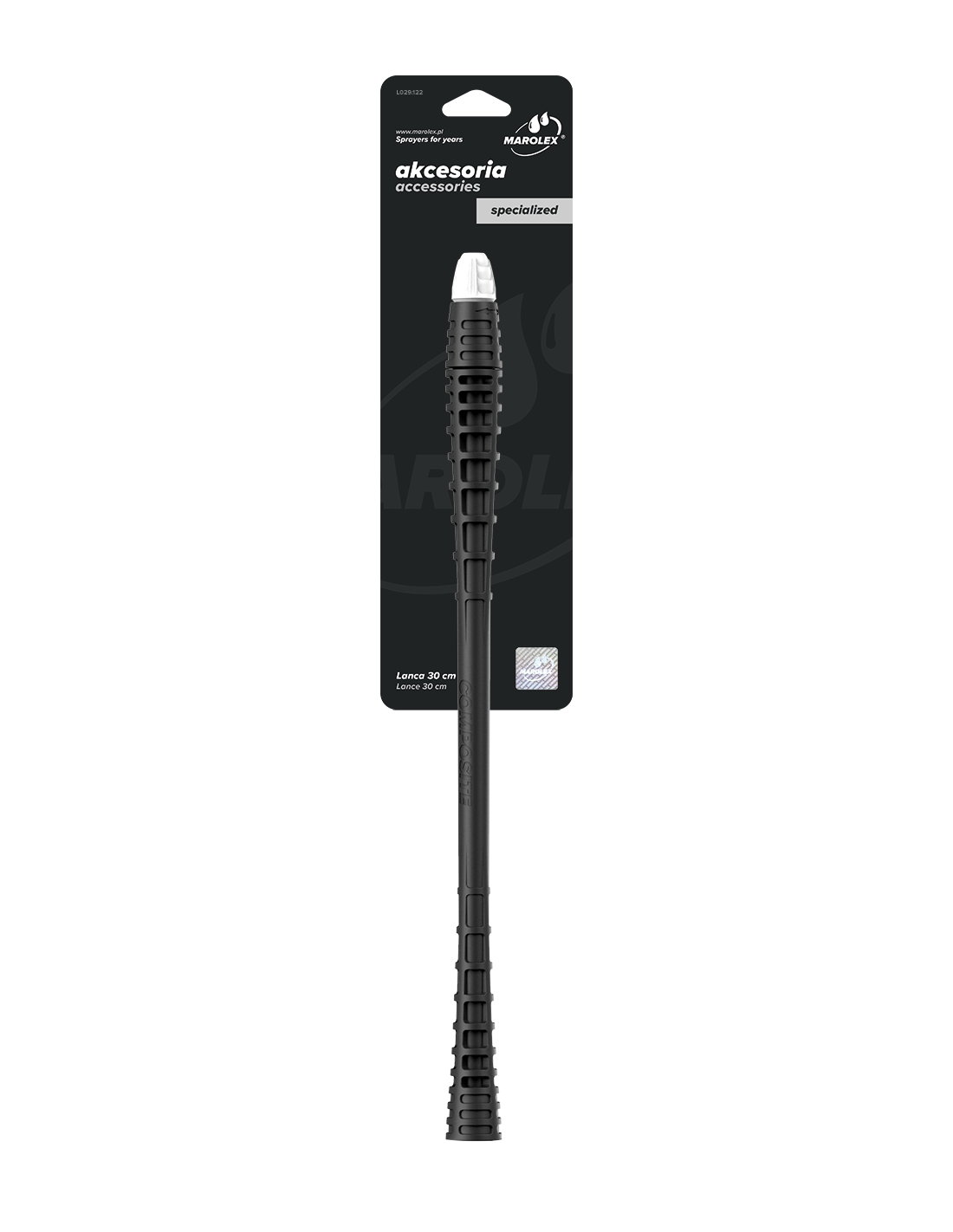 Lanca kompozytowa stworzona specjalnie do opryskiwaczy industry ergo acid. Zwiększa zasięg pracy opryskiwacza ręcznego. 30-centymetrowy odcinek pozwala z łatwością dostać się do trudno dostępnych miejsc np. w samochodzie. Dzięki uniwersalnej konstrukcji końcówki lancy, można ją doposażyć w każdą dyszę z naszej oferty.