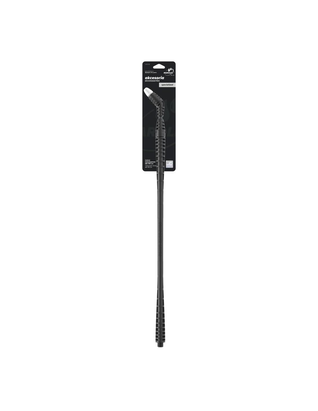 Lanca teleskopowa, kompozytowo-stalowa 65-115 cm. Stal kwasoodporna. Lanca pasuje do wszystkich modeli opryskiwaczy z serii industry acid. długość regulowana: 65-115 cm specjalne uszczelnienia viton materiał: kompozyt i stal kwasoodporna lanca wyposażona w dyszę MR1.5-90° (biała) o regulowanym kącie strumienia, wydatek cieczy 0,50 litra/min