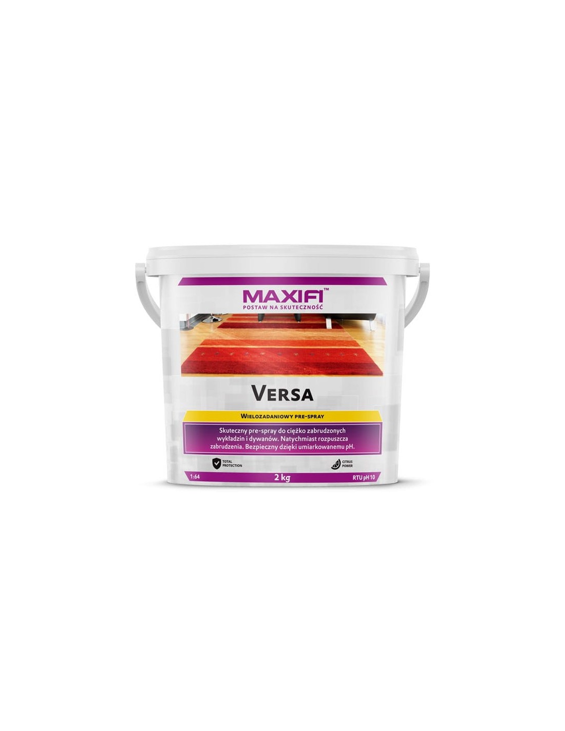 Maxifi Versa 2kg to skoncentrowany pre-spray w proszku, przeznaczony do wstępnego przygotowania tapicerki, wykładzin i dywanów przed praniem ekstrakcyjnym lub ręcznym. Dzięki wysokiej skuteczności usuwa zabrudzenia organiczne i tłuste plamy, poprawiając efektywność dalszych zabiegów czyszczących. Produkt jest bezpieczny dla większości powierzchni tekstylnych i łatwy w stosowaniu.