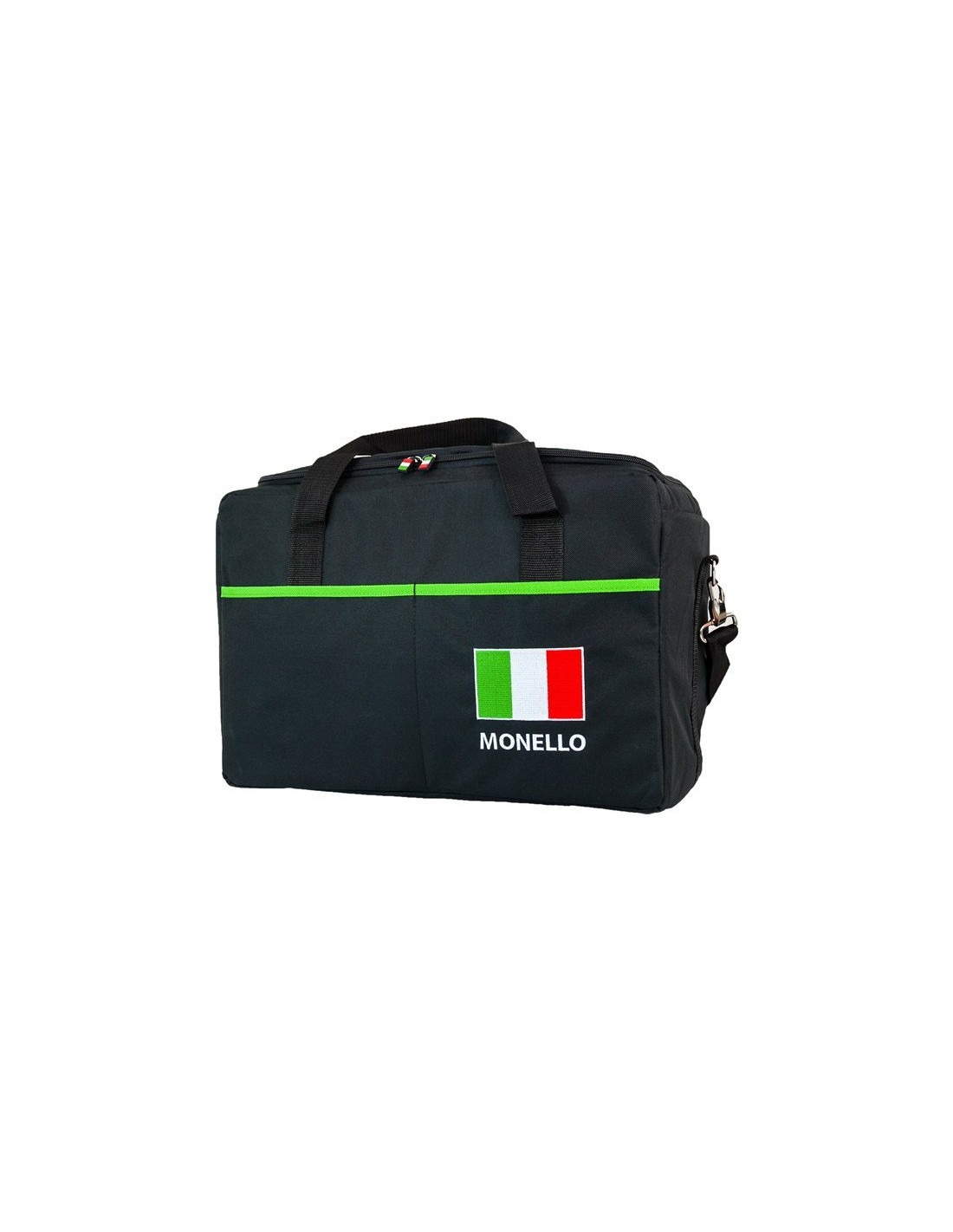 Torba posiada wyszywane logo Monello i zielone akcenty.