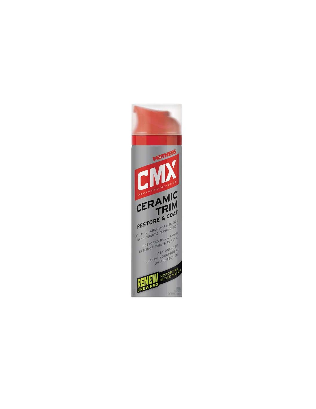 Mothers CMX Ceramic Trim Restore & Coat – zabezpieczając nasze pojazdy, często zapominamy o elementach nielakierowanych. A przecież powierzchnie gumowe, plastikowe i winylowe również zużywają się i niszczą podczas codziennej eksploatacji. CMX Ceramic Trim Restore & Coat w łatwy sposób przywraca im fabryczny wygląd, tworząc niezwykle trwały film zabezpieczający. Wykorzystując unikalną mieszankę nano-kwarcu SiO2, stworzoną przez chemików Mothers uzyskasz ultratrwałą, super hydrofobową, odporną na wysoką temperaturę barierę ochronną. Zapobiega ona dalszemu niszczeniu spowodowanemu przez zanieczyszczenia atmosferyczne: słońce, smog, ozon, wodę czy chemikalia. Pojemność: 200 ml