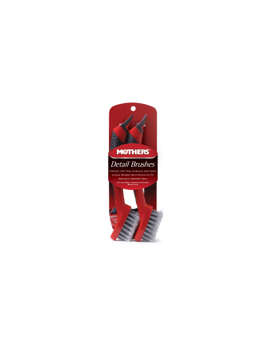 Mothers Detail Brushes – uniwersalne szczotki do czyszczenia zakamarków oraz niewielkich elementów, takich jak np. emblematy, zawiasy, ościeża czy elementy wewnątrz komory silnika. Wyjątkowo miękkie, nierysujące włosie szczotek doskonale poradzi sobie również z trudno dostępnymi elementami wewnątrz pojazdu. Dzięki antypoślizgowym uchwytom szczotki są łatwe i bezpieczne w użyciu.