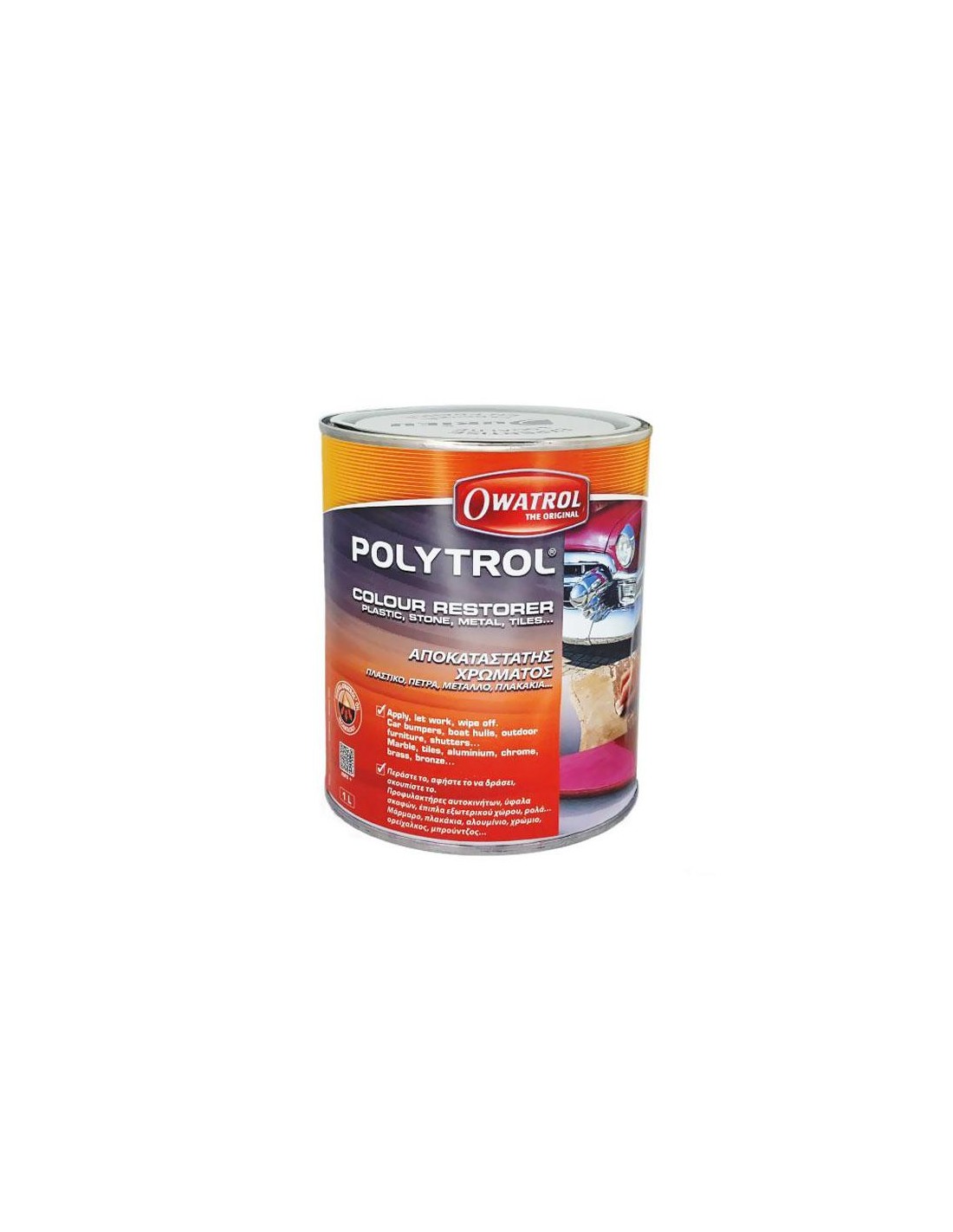 Polytrol to jeden z najpopularniejszych preparatów, który odnawia wypłowiałe i zniszczone powierzchnie z tworzyw sztucznych, polerowanych metali, marmuru oraz powierzchni lakierowanych. Nadaje połysk i chroni metale polerowane i chromowane. Nadaje się do użycia na wypłowiałe, zniszczone plastiki oraz gumowe elementy na zewnątrz pojazdu, nadaje im połysk i przywraca fabryczny wygląd. Wnika w strukturę tworzyw, dzięki temu efekt jest długotrwały. Sposób użycia: -wyczyść powierzchnię z pyłów i osadów -osusz powierzchnię -równomiernie rozprowadź preparat za pomocą pędzla, gąbki lub ściereczki -zostaw na 10-20 minut, następnie zetrzyj nadmiar za pomocą mikrofibry -pozostaw do wyschnięcia
