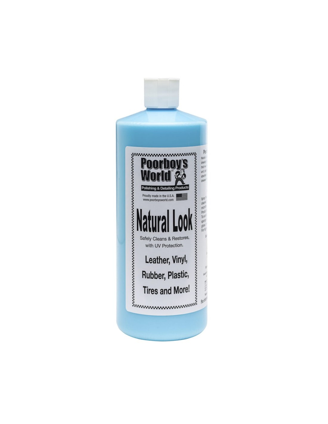 Poorboy's WorldPoorboy's World Natural Look to środek pielęgnacyjny oparty na bazie wody. Delikatnie czyści i podkreśla naturalny wygląd powierzchni plastikowych, winylowych oraz gumowych. Pokryta produktem powierzchnia zyskuje barierę ochronną przed szkodliwym promieniowaniem UV. Produkt nie zawiera szkodliwych chemikaliów i niebezpiecznych toksyn przez co nie niszczy powierzchni. Poorboy's World Natural Look pozostawia suchą powierzchnię nie tworząc lepkiej warstwy za to wyraźnie odżywia i nadaje jej zdrowy wygląd. Zapobiega utracie koloru i zabezpiecza powierzchnię przed powstawaniem drobnych pęknięć i złuszczeń.