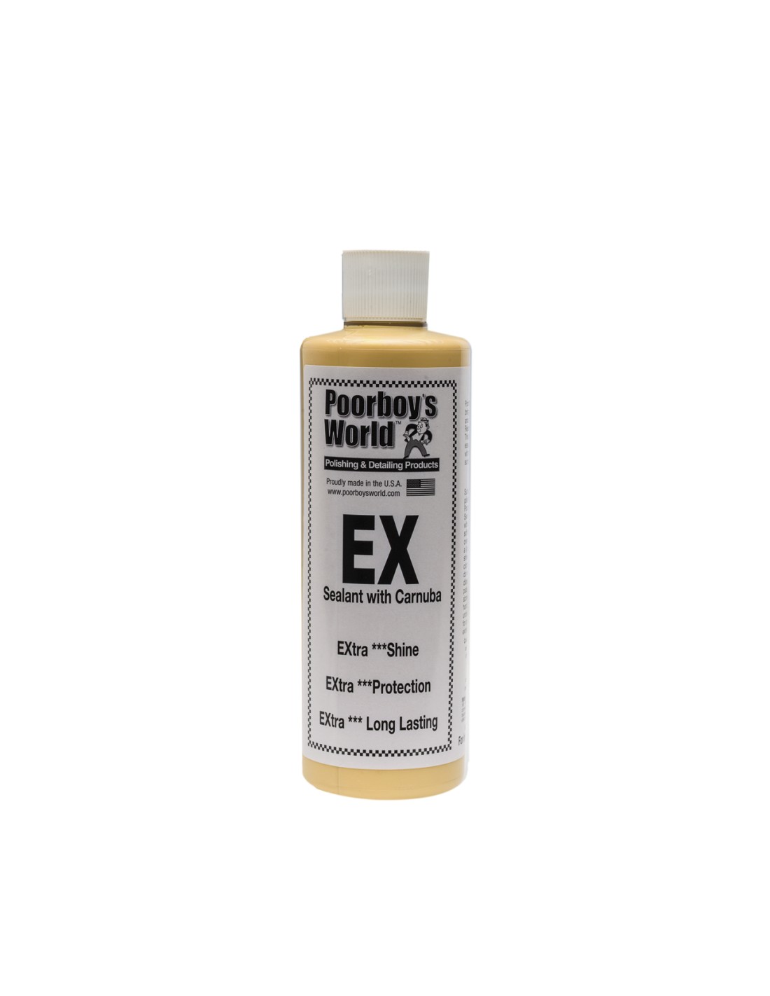Poorboy's World EX Sealant with Carnauba – to jeden z najlepszych wosków syntetycznych dostępnych na rynku profesjonalnych kosmetyków samochodowych. Bajecznie prosty w użyciu, pozwala nawet na aplikację w pełnym słońcu podczas gdy większość konkurencyjnych produktów wymaga cienia. Zapewnia doskonałe wizualnie wykończenie lakieru oraz 2-3 miesięczną ochronę po każdorazowym zastosowaniu. Tak jak inne zaawansowane technologicznie woski syntetyczne zwane hybrydami, EX zawiera naturalny wosk brazylijski Carnauba, dzięki któremu lakier zyskuje głębię koloru oraz niebywałą śliskość.