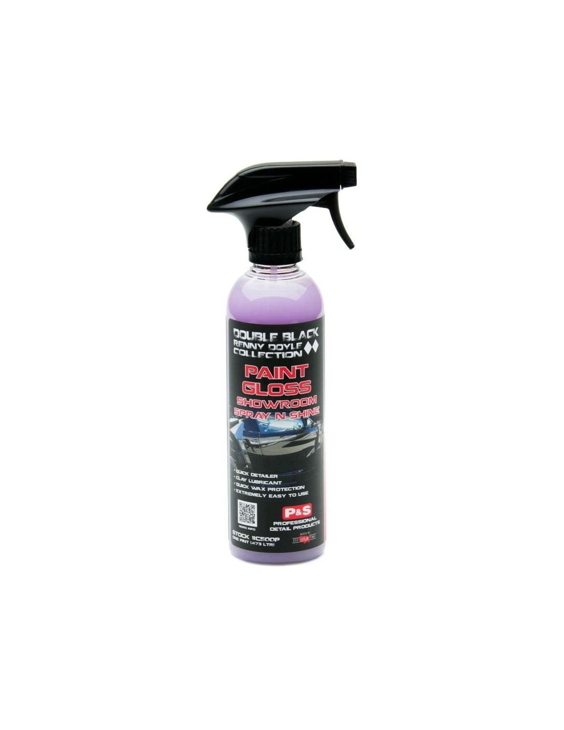 Quick detailer i lubrykant do glinki w jednym! Renny Doyle Double Black Paint Gloss Spray N Shine to wszechstronny produkt, który nie tylko usuwa brud, odciski palców, kurz i smugi z powierzchni lakieru, ale także działa jak lubrykant glinkowy! Renny Doyle Double Black Paint Gloss Showroom Spray N Shine to produkt na bazie wody, który zawiera wyjątkowo śliskie środki smarne, które zapewniają, że możesz dotknąć lakieru bez ryzyka uszkodzenia powierzchni.