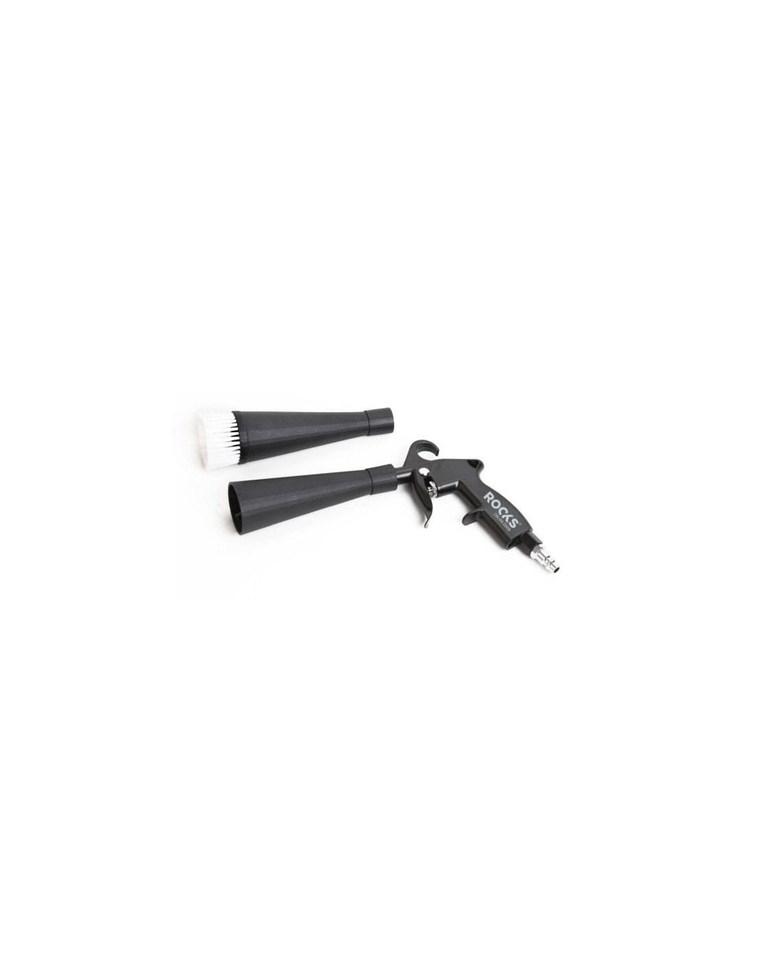 Rooks Blow Gun to profesjonalny pistolet pneumatyczny przeznaczony do czyszczenia tapicerki, wnętrz pojazdów oraz trudno dostępnych miejsc. Dzięki wykorzystaniu sprężonego powietrza oraz systemu wirującej dyszy, narzędzie skutecznie usuwa kurz, brud, piasek i inne zanieczyszczenia z powierzchni materiałowych, plastikowych i skórzanych.