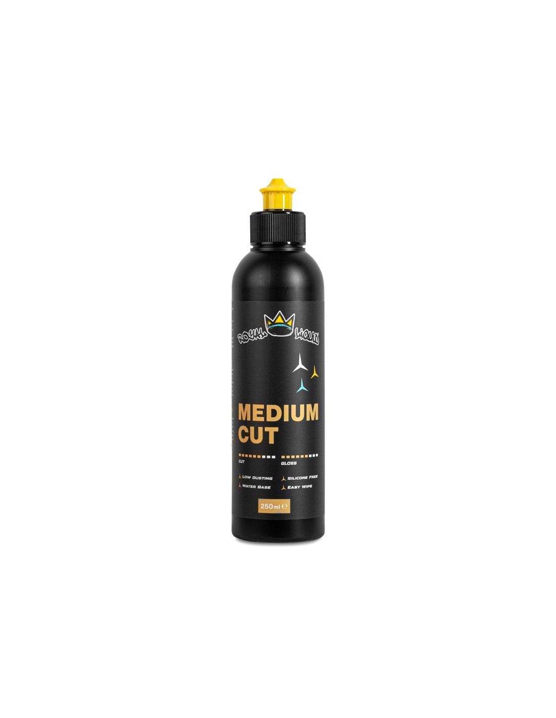 Royal Liquid Medium Cut – Idealny Balans Mocy i Blasku Szukasz złotego środka w procesie korekty lakieru? Royal Liquid Medium Cut to pasta polerska, która łączy w sobie cechy dwóch światów: skuteczne usuwanie defektów oraz widowiskowe wykończenie. To wszechstronne narzędzie, które w wielu przypadkach pozwala na uzyskanie perfekcyjnego efektu One-Step. Kluczowe cechy Royal Liquid Medium Cut: Ta pasta została stworzona z myślą o Lakiernikach i Detailerach, którzy cenią sobie czas i precyzję. Jest to produkt, który odnajdzie się przy każdym rodzaju lakieru. Świetny Kompromis: Pasta oferuje optymalną siłę cięcia, jednocześnie pozostawiając lakier z wysokim połyskiem. Skraca czas pracy, przygotowując powierzchnię do finalnego zabezpieczenia lub bardzo delikatnego finiszu. Skuteczność P2000: Formuła ścierna jest na tyle wydajna, że bez problemu usuwa ślady po papierze ściernym o gradacji P2000, radząc sobie z umiarkowanymi zarysowaniami i zmatowieniami. Formuła na Bazie Wodnej: Bezpieczeństwo i łatwość użytkowania to priorytety. Dzięki wodnej bazie pasta nie zasycha zbyt szybko, a resztki produktu usuwa się z lakieru oraz padów bez najmniejszego wysiłku. Zero Wypełniaczy: Royal Liquid Medium Cut nie maskuje niedoskonałości. Brak silikonów i wypełniaczy daje Ci pewność, że efekt „wow” po inspekcji lakieru jest trwały i autentyczny. Niskie Pylenie: Praca z tą pastą to czysta przyjemność. Zminimalizowane pylenie oznacza mniej sprzątania w szczelinach karoserii i na elementach plastikowych. Specyfikacja techniczna w pigułce: Baza - Wodna Pylenie - Minimalne Wypełniacze - Brak Siła cięcia - P2000 Wskazówki: One-Step: Użyj pasty ze średnio-twardym padem polerskim (Royal Pads One Touch Wool, OF Medium, OF One Step), aby uzyskać szybkie odświeżenie lakieru z wysokim połyskiem w jednym kroku. Dwuetapowa korekta: Wykorzystaj Royal Liquid Medium Cut jako drugi krok po paście Heavy Cut, aby usunąć ewentualny haze (mgiełkę) i wydobyć głębię koloru przed nałożeniem powłoki lub wosku. Maszyny: Pasta doskonale współpracuje z maszynami typu Dual Action (DA) oraz maszynami rotacyjnymi. Wybierz Royal Liquid Medium Cut – bo profesjonalizm to umiejętność pójścia na kompromis tam, gdzie liczy się czas, ale nigdy tam, gdzie liczy się jakość. Pojemność 250 ml