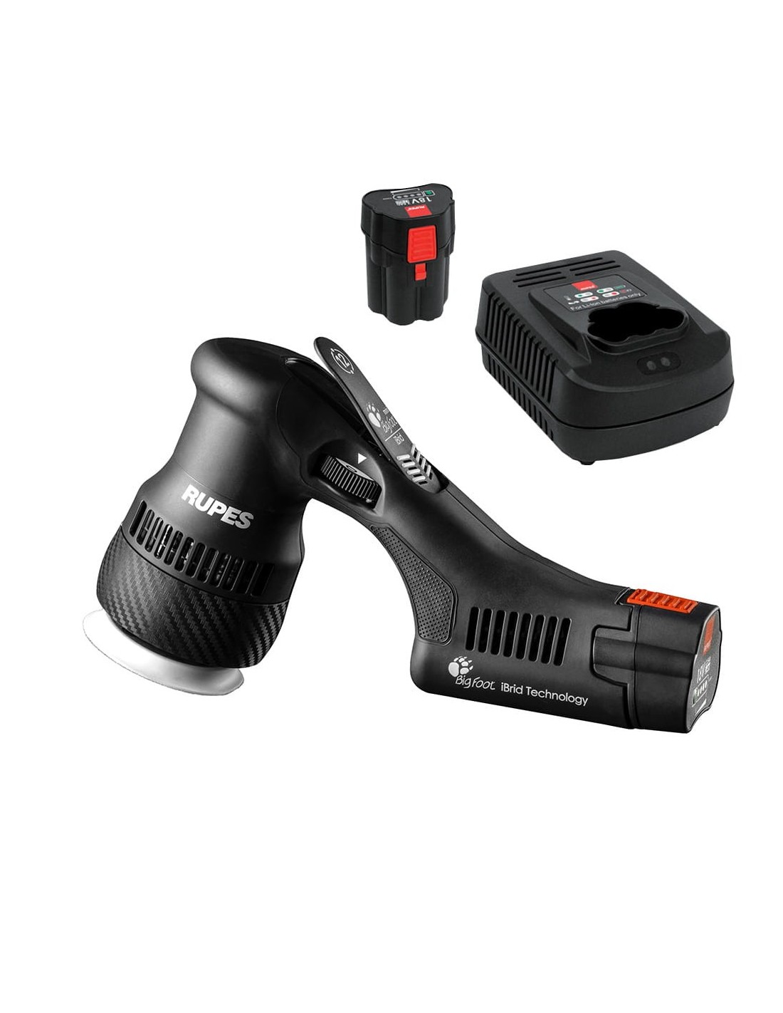 Nowa polerka BigFoot Mini iBrid HLR75 o skoku 12mm to kolejna maszyna z serii iBrid, która pozwala na pracę zarówno na akumulatorze lub na zasilaczu sieciowym. Oscylacja o skoku 12mm i tarcza robocza o średnicy 75mm idealnie sprawdzają się przy polerowaniu trudno dostępnych miejsc i napraw punktowych. Nowoczesny desgin połączony z wysoką jakością wykonania gwarantuje maksymalny komfort podczas pracy. Mocne 18V akumulatory litowo-jonowe ze wskaźnikami LED pokazującymi poziom naładowania pozwalają na ciągłą pracę do 45 minut. Pełen cykl ładowania baterii wynosi około 35 minut.