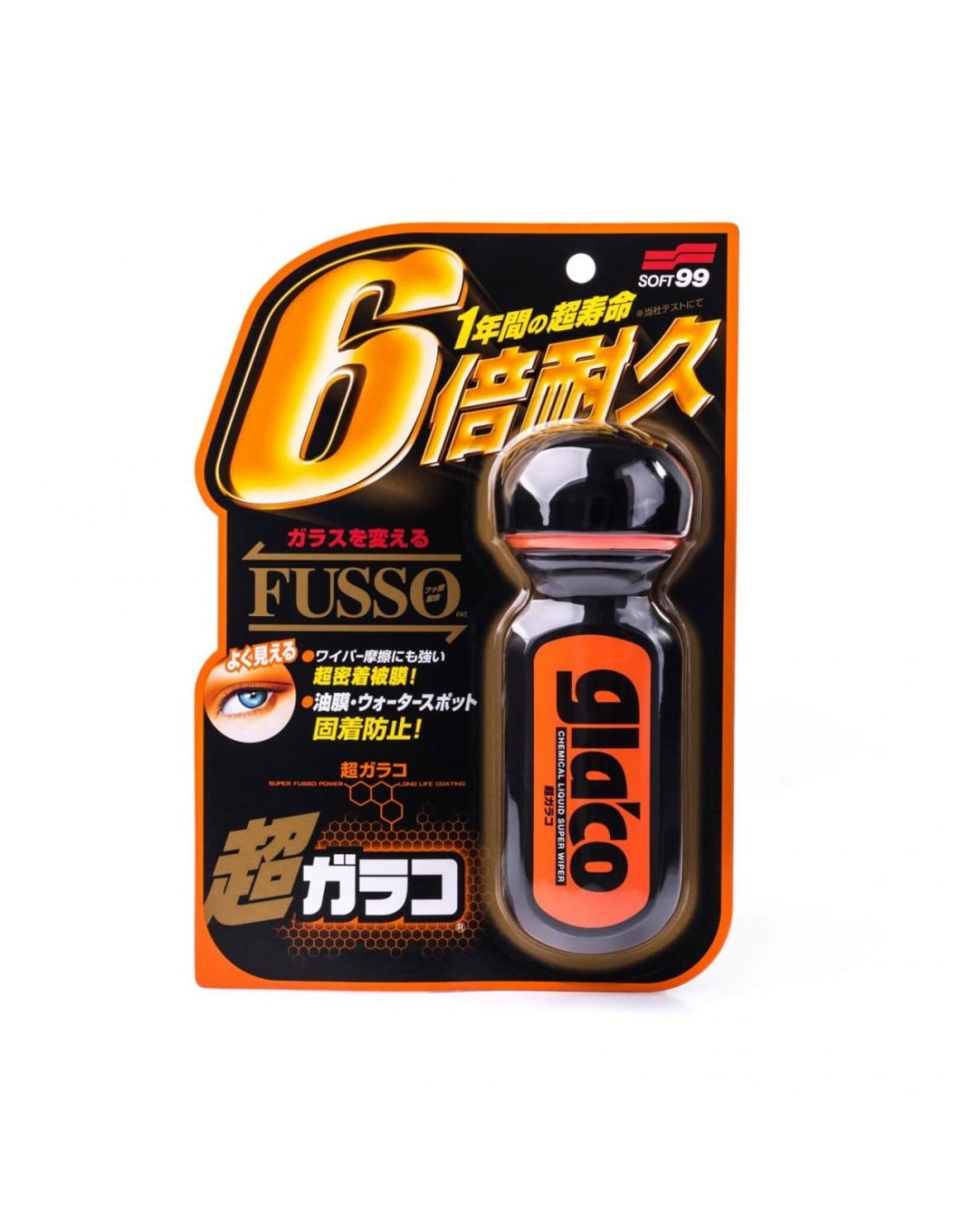 Soft99 Ultra Glaco - jest to preparat typu "niewidzialna wycieraczka", który tworzy powłokę zabezpieczającą na powierzchni szyb. Efekt „niewidzialnej wycieraczki" jest dostępny już od 45 km/h i utrzymuje się nawet do 1 roku czasu. Odpowiedni na każdą pogodę - szyby w zimie trudniej ulegają zamarzaniu z powodu opadów śniegu lub występowania szronu.