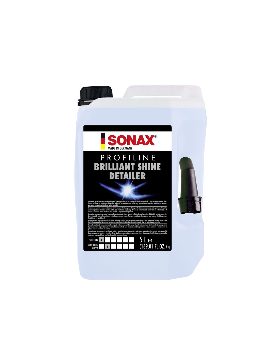 Sonax Profiline Brilliant Shine Detailer 5L to profesjonalny preparat typu quick detailer, stworzony z myślą o szybkiej pielęgnacji i nabłyszczaniu lakieru samochodowego. Idealny do użytku w studiach detailingu oraz myjniach ręcznych, pozwala w krótkim czasie uzyskać efekt gładkiego, śliskiego i błyszczącego lakieru.