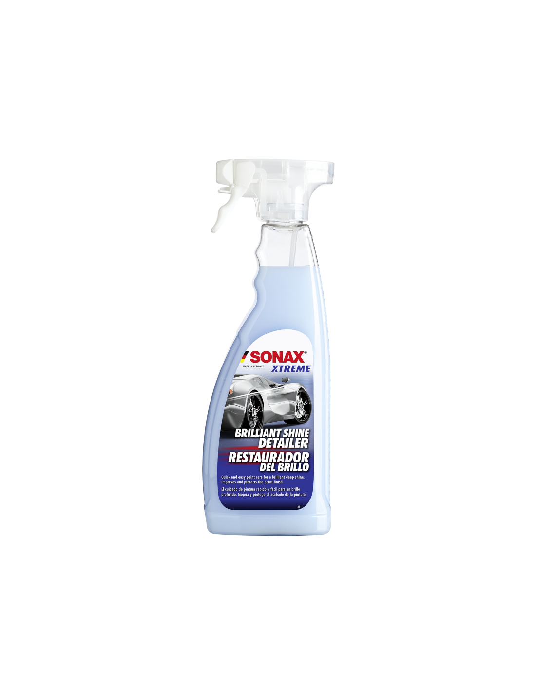 Sonax Xtreme Brilliant Shine Detailer 750ml to profesjonalny, szybki preparat nabłyszczający, który nadaje lakierowi samochodowemu głęboki połysk i intensywny kolor. Idealny do zastosowania między myciami, na lekko zabrudzone powierzchnie, usuwa kurz, lekkie osady i odciski palców, pozostawiając lakier czysty, gładki i lśniący.