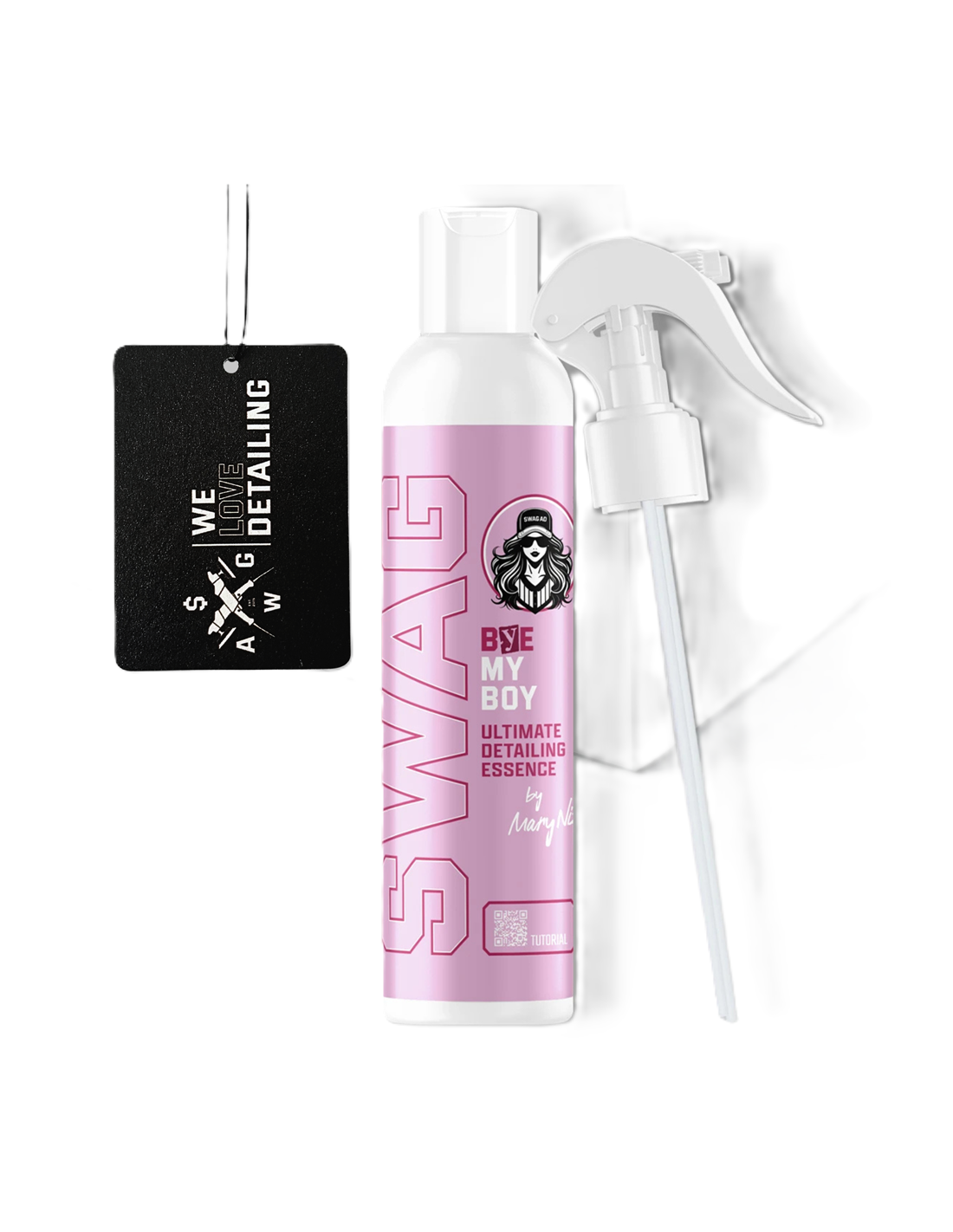 Długotrwały zapach | Zmysłowa głębia | Świeżość i elegancja Pierwszy akt naszej trylogii należy do kobiet. Swag BYE MY BOY to zapach, który otwiera nową erę w portfolio Swag Detailing Ultimate Essence. To moment, w którym elegancja spotyka się z bezkompromisową objętością. PERFUMY W ROZMIARZE XL Wprowadzamy format, który uświadamia, że rozmiar ma znaczenie. Nasze Perfumy XL (150 ml) to manifest obfitości. Rezygnujemy z mikro-skali na rzecz doznań, które nie mają końca. Startujemy z BYE MY BOY. Gra słów Bye My Boy lub Be My Boy. Dajemy 150 ml czystej esencji. Bądź gotowa na początek serii, która zmieni atmosferę w Twoim otoczeniu. Pierwszy krok należy do Swag BYE MY BOY. Kolejne rozdziały – DAY WITH EX oraz NIGHT WITH NEXT – czekają już w kolejce, by dopełnić tę historię. SWAG ULTIMATE ESSENCE – WIĘCEJ NIŻ PERFUMY. WIĘCEJ NIŻ MYŚLISZ. KILKA SŁÓW O NOWEJ LINII: SWAG ULTIMATE ESSENCE – OLFAKTORYCZNY MANIFEST EMOCJI Zapach to najsilniejszy nośnik wspomnień i najkrótsza droga do podkreślenia własnego "ja". Swag Detailing Cosmetics prezentuje linię SUE (Swag Ultimate Essence) – kolekcję perfum, które nie służą jedynie wypełnieniu przestrzeni. One definiują momenty, budują napięcie i celebrują pewność siebie. Wychodząc naprzeciw oczekiwaniom, odrzucamy rynkowy standard małych form 30 czy też 50ml. 150 ml czystej esencji to deklaracja bezkompromisowości. To produkt dla tych, którzy nie uznają półśrodków i pragną, aby ich ulubiony aromat trwał tak długo, jak towarzyszące mu emocje. TRYLOGIA PRAGNIEŃ: GRA ZNACZEŃ Linia SUE to zaproszenie do intelektualnej i zmysłowej gry. Nazwy produktów, dzięki swojej dwuznaczności, pozwalają na interpretację zależną od nastroju, odwagi i osobistych doświadczeń. BYE MY BOY (czyt. BE MY BOY) | Siła i Fascynacja Damska odsłona kolekcji to hołd dla niezależności, która nie wyklucza zmysłowości. To zapach kobiety świadomej swojego magnetyzmu. Bye My Boy to stanowcze odcięcie od tego, co banalne, podczas gdy fonetyczne Be My Boy staje się subtelnym, intrygującym szeptem. Kompozycja głęboka, elegancka i niepokojąco przyciągająca, budująca aurę luksusu, która dominuje w otoczeniu. DAY WITH EX (czyt. DAY WITH NEXT) | Pewność i Odrodzenie Świeżość podszyta doświadczeniem. Gra słów sugeruje lekkość w przechodzeniu między etapami i gotowość na to, co przyniesie jutro. To zapach zwycięstwa nad rutyną i celebracja wewnętrznej siły. Balansuje między rześką energią a stabilną elegancją, tworząc aurę sukcesu i gotowości na nowe wyzwania. NIGHT WITH NEXT (czyt. NIGHT WITH EX) | Tajemnica i Napięcie Zapach, który najlepiej czuje się w półcieniu. Nazwa balansuje na granicy tego, co minione, i tego, co dopiero nadejdzie. To esencja dla osób, które cenią dreszcz niepewności i intensywność nowych doznań. Magnetyczne, cięższe nuty tworzą intymną atmosferę pełną niedopowiedzeń. To zapach-obietnica, który zostaje w pamięci na długo po tym, jak zgaśnie światło. EKSKLUZYWNA WYDAJNOŚĆ BEZ KOMPROMISÓW Pojemność 150 ml: Pięciokrotnie większa objętość niż w standardowych ofertach. To luksus, którego nie trzeba dawkować z obawą o szybkie zużycie. Architektura Zapachu: Zaawansowana formuła sprawia, że esencja uwalnia się stopniowo, dojrzewając w przestrzeni i zmieniając swój charakter wraz z upływem czasu. Czystość Formy: Produkt eliminuje niepożądane aromaty u źródła, tworząc idealnie czyste tło dla dominującej kompozycji SUE. Symbol Przynależności: Każda butelka dopełnia dedykowana zawieszka WE LOVE DETAILING – dyskretny detal dla estetów i koneserów jakości. WŁAŚCIWOŚCI Intensywny, głęboki zapach o zmysłowej głębi Długotrwałe działanie Bezpieczny dla wnętrz pojazdów Neutralizuje nieprzyjemne zapachy Wyrazista, elegancka i kobieca kompozycja Łatwy w użyciu Idealny dla Studiów Detailingowych i Entuzjastek SPOSÓB UŻYCIA Przed użyciem: Delikatnie wstrząśnij butelką, aby równomiernie rozprowadzić kompozycję zapachową. Pierwsza aplikacja: Spryskaj obficie zapachem Swag BYE MY BOY na dołączoną do zapachu zawieszkę (aż stanie się wilgotna i lekko spuchnie) i inne tekstylne elementy wnętrza pojazdu. Dawkowanie: Aplikuj zapach według własnych preferencji, dbając o umiarkowaną ilość, aby uniknąć nadmiernego nasycenia wnętrza. Odświeżanie: W razie potrzeby powtarzaj aplikację, aby utrzymać stały poziom zapachu. DODATKOWE ZALECENIA Nie przemrażać. Przed użyciem wstrząsnąć. Chronić przed światłem słonecznym. Przechowywać w chłodnym i suchym miejscu. ZESTAW ZAWIERA 1 x perfuma do auta Swag BYE MY BOY / 150ml 1 x zawieszka WE LOVE DETALING / SWAG DETAILING COSMETICS