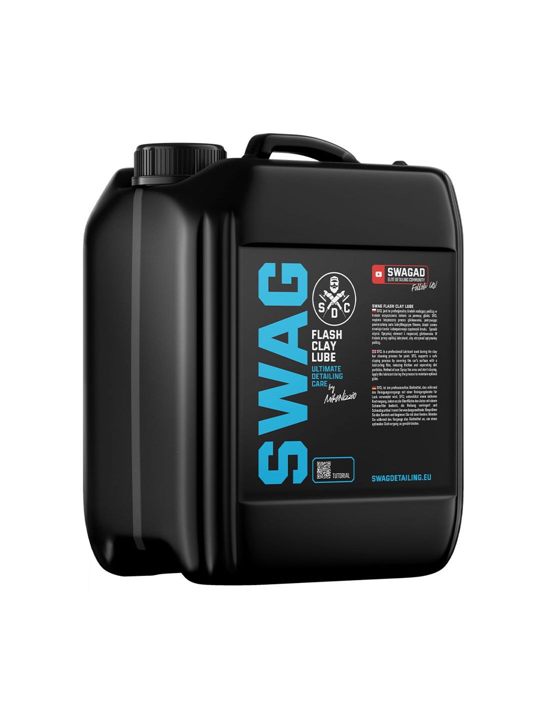 Swag FLASH CLAY LUBE jest to profesjonalny, środek nadający poślizg w trakcie oczyszczania lakieru auta za pomocą glinki. Swag FLASH CLAY LUBE wspiera bezpieczny proces glinkowania, pokrywając powierzchnię auta lubryfikującym filmem, dzięki czemu niweluje tarcie i ułatwia odseparowanie osadów. WŁAŚCIWOŚCI Potęguje poślizg i ułatwia glinkowanie Chroni glinkę przed zniszczeniem i wydłuża jej żywotność Idealny do wszystkich typów glinek Bezpieczny dla lakieru Posiada przyjemny zapach, który umila pracę SPOSÓB UŻYCIA Opryskaj czyszczony element samochodu atomizerem. Rozpocznij glinkowanie. W trakcie pracy aplikuj SFCL, aby utrzymać optymalny poślizg. DODATKOWE ZALECENIA Nie przemrażać. Przed użyciem wstrząsnąć. Chronić przed światłem słonecznym. Przechowywać w chłodnym i suchym miejscu. Pojemność 5 L