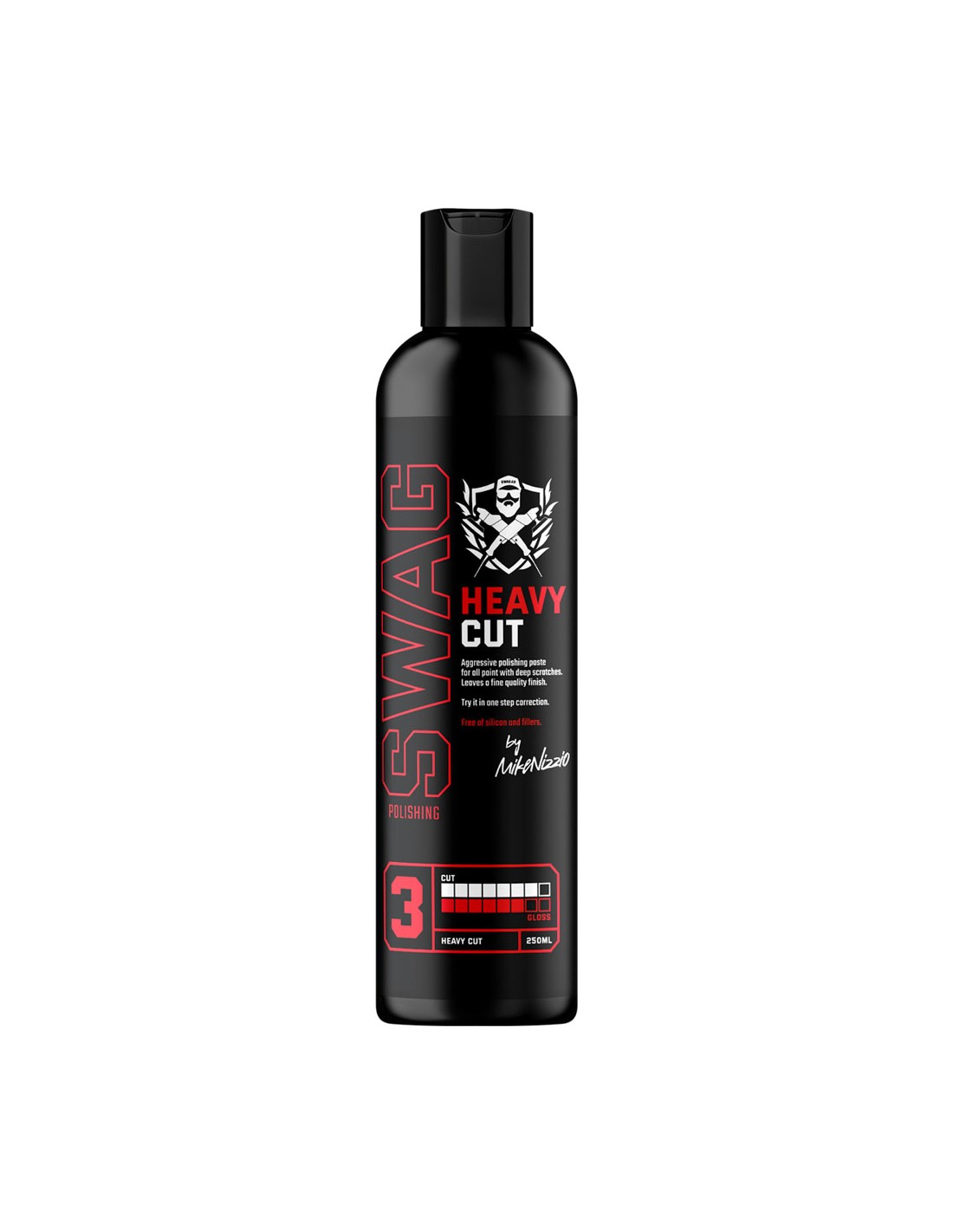 Swag HEAVY CUT V.2 jest to agresywna pasta polerska typu Heavy Cut. Została stworzona dla wszystkich Studiów Detailingowych i Entuzjastów Autokosmetyki, którzy potrzebują zawansowanego i bezkompromisowego produktu do usunięcia większości degradacji lakieru, takich jak: rysy, ''wypiaskowanie'', wżery po ptasich ekskrementach bądź owadach. Formuła pasty polerskiej łączy w sobie dwie technologie PROGRESS ABRASIVE | LOW TEMP, będących połączeniem cząsteczek o szerokim zakresie ścierności i struktury pasty o wysokiej lubryfikacji. Synergia składników zapewnia wyjątkowe właściwości, dużą siłę ścierną i optymalną jakość wykończenia w połączeniu z bazą pasty wspierającą odprowadzeniem temperatury, które minimalizuje ryzyko przegrzania lakieru, jednocześnie ułatwia prowadzenie maszyny polerskiej po karoserii pojazdu. Technologia pasty umożliwia pracę na futrze polerskim, padach gąbkowych i dyskach typu sztruks | jeans. Niezależnie od formy i techniki pracy, Swag HEAVY CUT V.2 zawsze udostępnia pełen potencjał siły ściernej, umożliwiając usunięcie mocnych degradacji. Swag HEAVY CUT V.2 mimo ogromnej siły tnącej, zapewnia wykończenia powierzchni na wysokim poziomie. Często umożliwiając wykonanie agresywnej korekty One Step w trakcie jednego przejazdu. Linia past polerskich SWAG POLISHING posiada atrybuty w postaci indywidualnych zapachów i kolorów, które uprzyjemniają pracę w trakcie polerowania i pozwalają łatwo rozróżnić gradacje past. WŁAŚCIWOŚCI Mocno ścierna gradacja PROGRESS ABRASIVE LOW TEMP Wspiera korektę Heavy One Step Ogromna siła cięcia Usuwa rysy, wżery zmatowienia min. po owadach Optymalna jakość wykończenia SPHC V.2 Redukcja temperatury Struktura pasty ułatwia prowadzenie maszyny Kompatybilna z polerkami RO i DA Potężna wydajność Owocowy zapach Unikatowy kolor Dla Studiów AD i Entuzjastów SPOSÓB UŻYCIA Używaj w zacienionym miejscu na chłodnej i czystej powierzchni. Przed użyciem wstrząśnij. Nałóż kilka kropel SPHC V.2 na pad polerski np. Cutting* *Wybierz twardość i rodzaj pada względem rodzaju korekty. Pracuj na obszarze roboczym około 40 x 40 cm. Rozprowadź, równą warstwę na całym fragmencie. Używaj maszyny polerskiej. Optymalne obroty maszyny polerskiej RO do 1500 obrotów. DA wedle preferencji Poleruj z umiarkowanym dociskiem do czasu wyrobienia pasty. Jeśli lakier ma wysoką temperaturę poczekaj aż ostygnie. Odtłuść powierzchnie środkiem SWAG FINAL INSPECT. Jeśli po inspekcji degradacje wciąż występują, powtórz proces. DODATKOWE ZALECENIA Nie przemrażać. Przed użyciem wstrząsnąć. Chronić przed światłem słonecznym. Przechowywać w chłodnym i suchym miejscu. Pojemność 250 ml