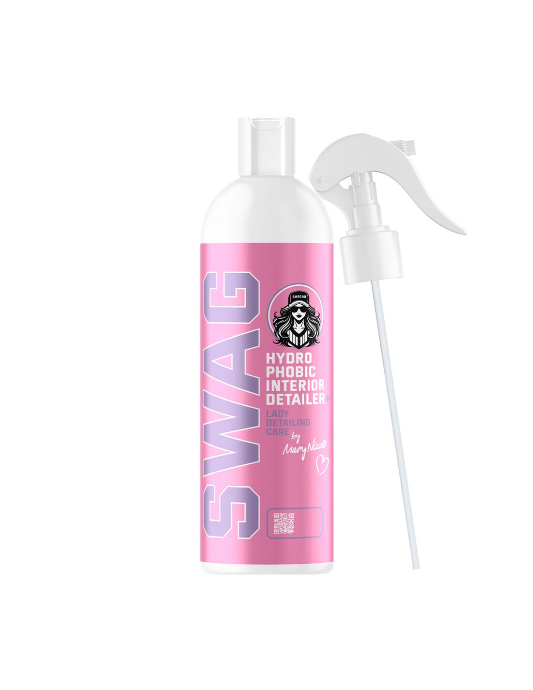 Swag LADY HYDROPHOBIC INTERIOR DETAILER+ jest to profesjonalny, hydrofobowy Interior Detailer do szybkiej pielęgnacji wewnętrznych elementów pojazdu, wykonanych z tworzyw sztucznych i gumy. Został stworzony dla Profesjonalistów i Entuzjastów autokosmetyki, którzy poszukują skutecznego środka łączącego w jednym kroku bieżącą pielęgnację i zabezpieczenie powierzchni kokpitu, boczków drzwi, słupków, listew wykańczających i uszczelek gumowych przed negatywnymi czynnikami degradującymi. Swag LADY HYDROPHOBIC INTERIOR DETAILER+ bazuje na formule łączącej zawansowane polimery, które tworzą hydrofobową warstwę ochronną. Interior Detailer ma delikatne właściwości czyszczące, przy zachowaniu głównej funkcji konserwacji materiałów gumowych, winylowych i plastikowych przed skutkami intensywnej eksploatacji i promieniowaniem UV. Funkcja hydrofobowa Swag LADY HYDROPHOBIC INTERIOR DETAILER+ ułatwia pielęgnację wnętrza pojazdu, przez utrudnienie zabrudzeniom przywierania do konserwowanej powierzchni. Interior Detailer zapewnia najwyższe walory wizualne w postaci wyrównania i pogłębienia kolorytu konserwowanych elementów, pozostawiając satynowe wykończenie. Swag LADY HYDROPHOBIC INTERIOR DETAILER+ posiada tropikalną nutę zapachową, która uprzyjemnia aplikację i subtelnie aromatyzuje wnętrze pojazdu. Forma produktu w postaci wygodnego sprayu optymalizuje czas pielęgnacji ułatwiając szybką i dokładną aplikację na każdym elemencie wnętrza. Swag LADY HYDROPHOBIC INTERIOR DETAILER+ posiada wszystkie atrybuty profesjonalnego Interior Detailera tj.: wysoka wydajność, szybka aplikacja, długi czas ochrony, aromatyczny zapach umilający użytkowanie, efekt hydrofobowości i spotęgowanie walorów wizualnych. WŁAŚCIWOŚCI Hydrofobowa powłoka ochronna Satynowe wykończenie Zbalansowane właściwości czyszczące Bieżąca pielęgnacja Nie pozostawia tłustego nalotu Wyrównuje i pogłębia koloryt Do elementów plastikowych i gumowych Chroni przed degradacjami i UV Szybka i łatwa aplikacja Wysoka wydajność Przyjemny zapach Dla Profesjonalistek i Entuzjastek SPOSÓB UŻYCIA LADY SHID+ aplikuj w zacienionym miejscu na chłodnej i czystej powierzchni. Przed użyciem wstrząśnij butelką. Zaaplikuj atomizerem LADY SHID+ na aplikator gąbkowy bądź bezpośrednio na element. Rozprowadź równą warstwę na całym elemencie. Delikatnie wypoleruj powierzchnię mikrofibrą. DODATKOWE ZALECENIA Nie przemrażać. Przed użyciem wstrząsnąć. Chronić przed światłem słonecznym. Przechowywać w chłodnym i suchym miejscu. Pojemność 500 ml
