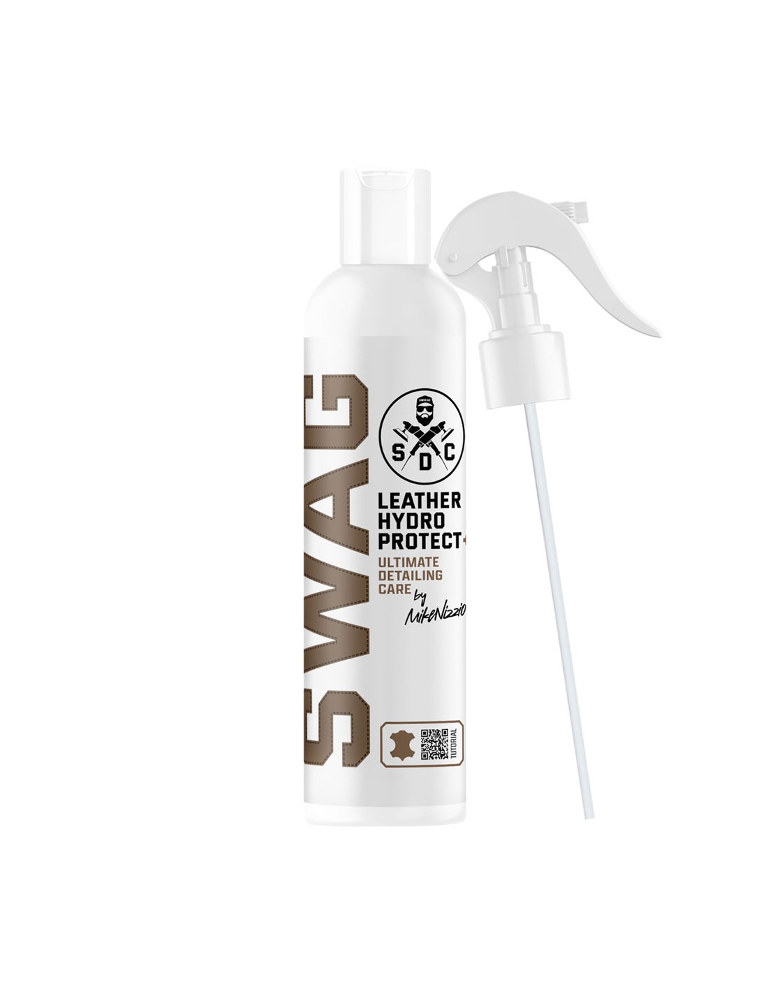 Swag LEATHER HYDRO PROTECT+ jest to profesjonalny środek typu Leather Quick Conditioner w formie sprayu. Przeznaczony do szybkiej pielęgnacji tapicerek skórzanych, został stworzony dla wszystkich Studiów AD i Entuzjastów autokosmetyki, którzy poszukują produktu do konserwacji elementów skórzanych pojazdu, zapewniającego satynowe wykończenie. Formuła Swag LEATHER HYDRO PROTECT+ opiera się na połączeniu hybrydowym składników opartych o SIO2, które tworzą na skórze elastyczną powłokę ochronną, dzięki której powierzchnia nabiera efektu hydrofobowego, skórzane lico staje się aksamitne w dotyku i natychmiast odżywione. Swag LEATHER HYDRO PROTECT+ podnosi walory wizualne tapicerki skórzanej przez pogłębienie kolorytu lica i wpływa na jej protekcje pozostawiając konserwującą warstwę. Swag LEATHER HYDRO PROTECT+ po pierwszej aplikacji zmniejsza ryzyko przetarcia tapicerki skórzanej, redukując tarcie na jej powierzchni i ograniczając migrację płynów w głąb materiału. W ten sposób chroni powierzchnię skóry przed degradującymi czynnikami zewnętrznymi. Płynna formuła Swag LEATHER HYDRO PROTECT+ umożliwia szybką konserwację i jest optymalnym wyborem w połączeniu z uprzednim użyciem Swag LEATHER CLEANER RTU. Swag LEATHER HYDRO PROTECT+ posiada wszystkie atrybuty profesjonalnego Quick Conditionera tj.: szybka impregnacja skóry, ograniczenie ryzyka przetarcia, efekt hydrofobowy, bariera przed płynami, odżywienie kolorytu, elegancki skórzany zapach i satynowe wykończenie. ZASTOSOWANIE Tapicerka skórzana, naturalna bądź syntetyczna, licowa i lakierowana. WŁAŚCIWOŚCI Ochrona przed przetarciami Efekt hydrofobowy Odżywia oraz pogłębia koloryt Utrudnia przemoczenie lica Płynna konsystencja Satynowe wykończenie Wysoka wydajność Szybka aplikacja Elegancki skórzany zapach Dla Profesjonalistów i Entuzjastów SPOSÓB UŻYCIA SLHP+ aplikuj w zacienionym miejscu na chłodnej i czystej powierzchni. Przed użyciem wstrząśnij butelką. Zaaplikuj atomizerem SLHP+ na skórzany element. Dokładanie rozprowadź aplikatorem gąbkowym równą warstwę na całym elemencie. Po aplikacji odczekaj minutę, następnie delikatnie wypoleruje powierzchnię mikrofibrą. *Jeżeli masz możliwość czasową to po pielęgnacji tapicerki auta, prewencyjnie odczekaj kilka minut aby powłoka miała czas na związanie z powierzchnią skóry. DODATKOWE ZALECENIA Nie przemrażać. Przed użyciem wstrząsnąć. Chronić przed światłem słonecznym. Przechowywać w chłodnym i suchym miejscu. Pojemność 250 ml