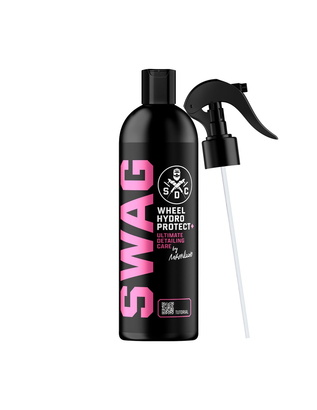 Swag WHEEL HYDRO PROTECT+ to płynny sealant przeznaczony do konserwacji felg aluminiowych, lakierowanych, polerowanych i metalowych. Środek został stworzony dla Studiów Detailingowych i Entuzjastów autokosmetyki, którzy w trakcie bieżącej pielęgnacji potrzebują szybko zabezpieczyć koła powłoką w formie wygodnego sprayu. Hybrydowa formuła Swag WHEEL HYDRO PROTECT+ wykorzystuje związki krzemowe, dzięki czemu na powierzchni felg tworzy się hydrofobowa warstwa ochronna. Swag WHEEL HYDRO PROTECT+ sprawia, że lakier na obręczach zyskuje głębię, szklistość i intensywny połysk. Efekt "wet look" oraz właściwości hydrofobowe sealantu rozrywają film wodny, rozbijają go na setki mikroskopijnych kropli, które błyskawicznie są odprowadzane z powierzchni. To znacząco ogranicza osadzanie się brudu drogowego, pyłu hamulcowego, soli i innych zanieczyszczeń eksploatacyjnych. Codzienna pielęgnacja kół staje się zdecydowanie łatwiejsza i szybsza. Swag WHEEL HYDRO PROTECT+ to esencja płynnego, syntetycznego wosku idealnego do bieżącej pielęgnacji felg. Dzięki użyciu atomizera uzyskujemy niezrównaną łatwość aplikacji powłoki. Środek doskonale sprawdza się zarówno jako samodzielna forma zabezpieczenia, jak i jako wsparcie dla powłok ceramicznych dedykowanych felgom. WŁAŚCIWOŚCI Szybka ochrona felg Łatwa konserwacja Efekt hydrofobowy instant Potęguje połysk lakieru Wspiera powłoki ceramiczne Efekt "mokrego lakieru" Zwiększa bezpieczeństwo pielęgnacji Dla Studiów Ad i Entuzjastów Aplikacja na sucho | mokro Najwyższa wydajność Owocowy zapach SPOSÓB UŻYCIA SWHP+ aplikuj w zacienionym miejscu na chłodnej i czystej powierzchni. SZYBKA KONSERWACJA | Na mokro Rozpyl atomizerem SWHP+ bezpośrednio na mokrą czystą felgę. Odczekaj kilka sekund, a następnie dokładnie spłucz wodą pod ciśnieniem. MAKSYMALNA OCHRONA | Na sucho Produkt nałóż na aplikator i rozprowadź równą warstwę, bądź rozpyl atomizerem bezpośrednio na element i rozprowadź mikrofibrą. Odczekaj około 1min. aby powłoka mogła lepiej związać się z powierzchnią. Wypoleruj felgę mikrofibrą o wysokiej gramaturze. Jeżeli zauważyłaś trudności z dotarciem, wykorzystaj nową mikrofibrę. Następnie przejdź do aplikacji na pozostałych kołach. DODATKOWE ZALECENIA Nie przemrażać. Przed użyciem wstrząsnąć. Chronić przed światłem słonecznym. Przechowywać w chłodnym i suchym miej Pojemność 500 ml