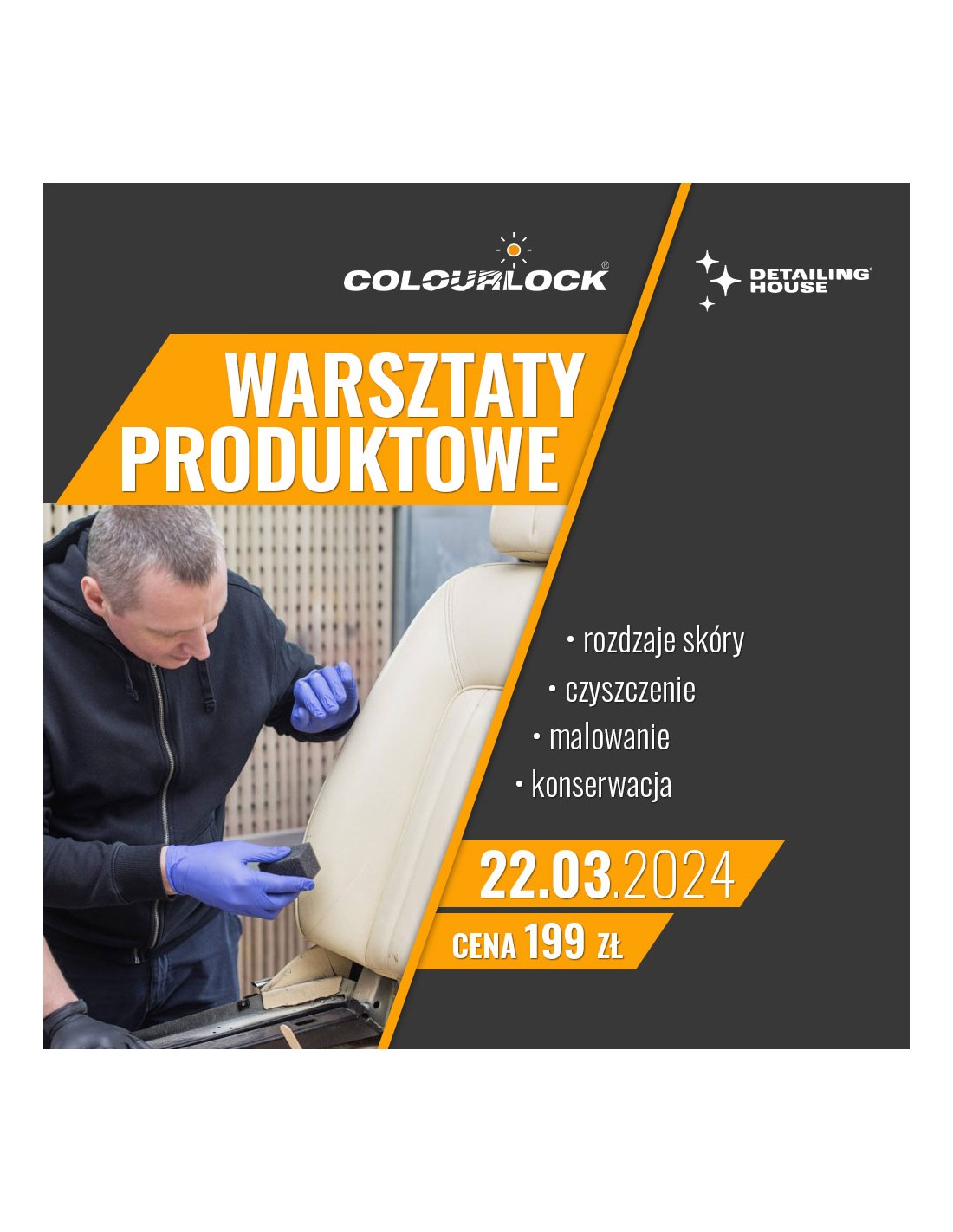 W piątek 22.03.2024 r. w Centrum Szkoleniowym Detailing House odbędą się warsztaty produktowe z firmą Colourlock. Colourlock jest wiodącą firmą specjalizującą się w produkcji profesjonalnych środków do czyszczenia, konserwacji i renowacji tapicerek skórzanych.