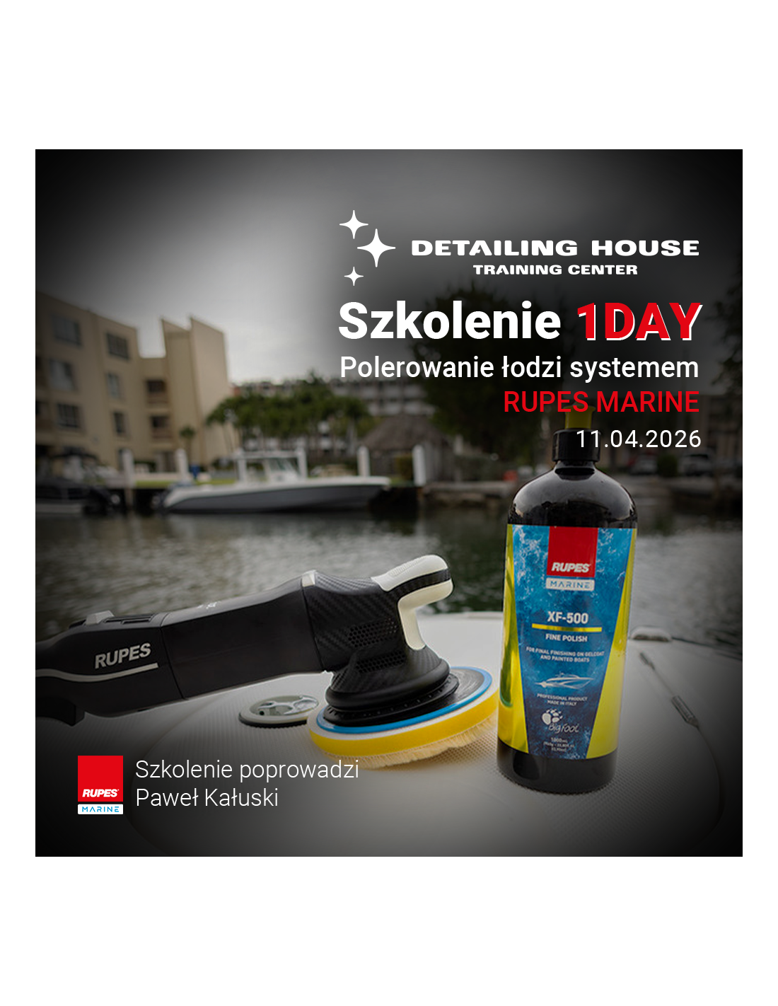 Szkolenie z polerowania łodzi systemem Rupes Marine – Profesjonalna korekta i ochrona żelkotu Opanuj zaawansowane techniki polerowania jednostek pływających z wykorzystaniem profesjonalnego systemu Rupes Marine. To kompleksowe, 8-godzinne szkolenie zostało zaprojektowane z myślą o detailerach, właścicielach stacji czyszczenia łodzi oraz pasjonatach żeglarstwa, którzy chcą samodzielnie dbać o perfekcyjny wygląd swoich jednostek. Udział w kursie to inwestycja w specjalistyczną wiedzę i praktyczne umiejętności, które pozwolą wejść w niszowy, ale bardzo perspektywiczny segment usług marine detailingu. Dla kogo kierowane jest to szkolenie? Dla profesjonalistów z branży detailingowej: Właściciele studiów detailingu samochodowego, którzy chcą rozszerzyć swoją ofertę o usługi z segmentu marine i poznać specyfikę pracy z żelkotem, która znacząco różni się od korekty lakieru samochodowego. Dla właścicieli i pasjonatów jednostek pływających: Osoby posiadające łodzie motorowe, żaglówki lub skutery wodne, które chcą samodzielnie wykonywać profesjonalne zabiegi korekty i polerowania, aby utrzymać swój sprzęt w nienagannej kondycji i zabezpieczyć go przed działaniem trudnych warunków atmosferycznych. Z naszej oferty skorzysta każdy, chcący podnieść swoje kwalifikacje i poznać dedykowany system Rupes Marine od podstaw. Czego dowiem się na szkoleniu Rupes Marine? Szkolenie łączy niezbędną wiedzę teoretyczną z intensywnymi ćwiczeniami praktycznymi, prowadząc uczestników przez wszystkie etapy profesjonalnej pielęgnacji żelkotu. Wiedza teoretyczna: Charakterystyka żelkotu jako powłoki do obróbki Przegląd systemu Rupes Marine, właściwości maszyn, rodzaje padów i ścieralność past w zależności od stopnia zmatowienia i uszkodzeń żelkotu. Zasady doboru odpowiednich kombinacji narzędzi i środków do konkretnych zadań, od usuwania zarysowań po nadawanie głębokiego, lustrzanego połysku. Metody zabezpieczania i pielęgnacji żelkotu po polerowaniu, aby przedłużyć efekt i chronić jednostkę przed promieniowaniem UV oraz osadami z wody. Umiejętności praktyczne – warsztat pracy: Przygotowanie jednostki: Techniki skutecznego mycia i odtłuszczania dużych powierzchni pionowych i poziomych. Zabezpieczanie elementów niemalowanych, okuć i osprzętu. Praca systemem Rupes Marine: Praktyczne ćwiczenia z wykorzystaniem maszyn oscylacyjno-rotacyjnych na dedykowanych padach. Nauka pracy na dużych, płaskich powierzchniach burt i pokładu. Korekta trudno dostępnych miejsc: Techniki polerowania w okolicach załamań, przy relingach i innych elementach zabudowy. Praca z wykorzystaniem mniejszych narzędzi i odpowiednich akcesoriów. Obróbka wykończeniowa: Metody usuwania pyłu polerskiego, ocena jakości wykonanej pracy oraz techniki aplikacji preparatów zabezpieczających. Otrzymaj certyfikat kompetencji z zakresu Marine Detailingu oraz rabaty zakupowe Każdy uczestnik po zrealizowaniu programu szkolenia otrzymuje imienny certyfikat potwierdzający nabyte kompetencje w zakresie polerowania jednostek pływających systemem Rupes Marine. Dodatkowo, w cenie szkolenia każdy uczestnik otrzymuje od firmy Rupes koszulkę z serii Marine oraz uzyskuje specjalny kod rabatowy uprawniający do 20% zniżki na zakup produktów Rupes, do wykorzystania w ciągu 2 miesięcy od daty szkolenia. Dane organizacyjne Koszt uczestnictwa: 699 zł brutto Liczba uczestników: 15 osób Czas trwania: 9:00 – 17:00 (8 godzin) Termin: 11 kwietnia 2026 r. Miejsce: Gdansk ul. Śnieżna 2 Letnica Staycleanteam W cenie: Koszulki z serii Rupes Marine oraz jednorazowy rabat 20% na asortyment marki Rupes Ze względu na ograniczoną liczbę miejsc i formułę warsztatową, decyduje kolejność zgłoszeń. W uwagach do zamówienia prosimy o wpisanie imienia i nazwiska uczestnika.