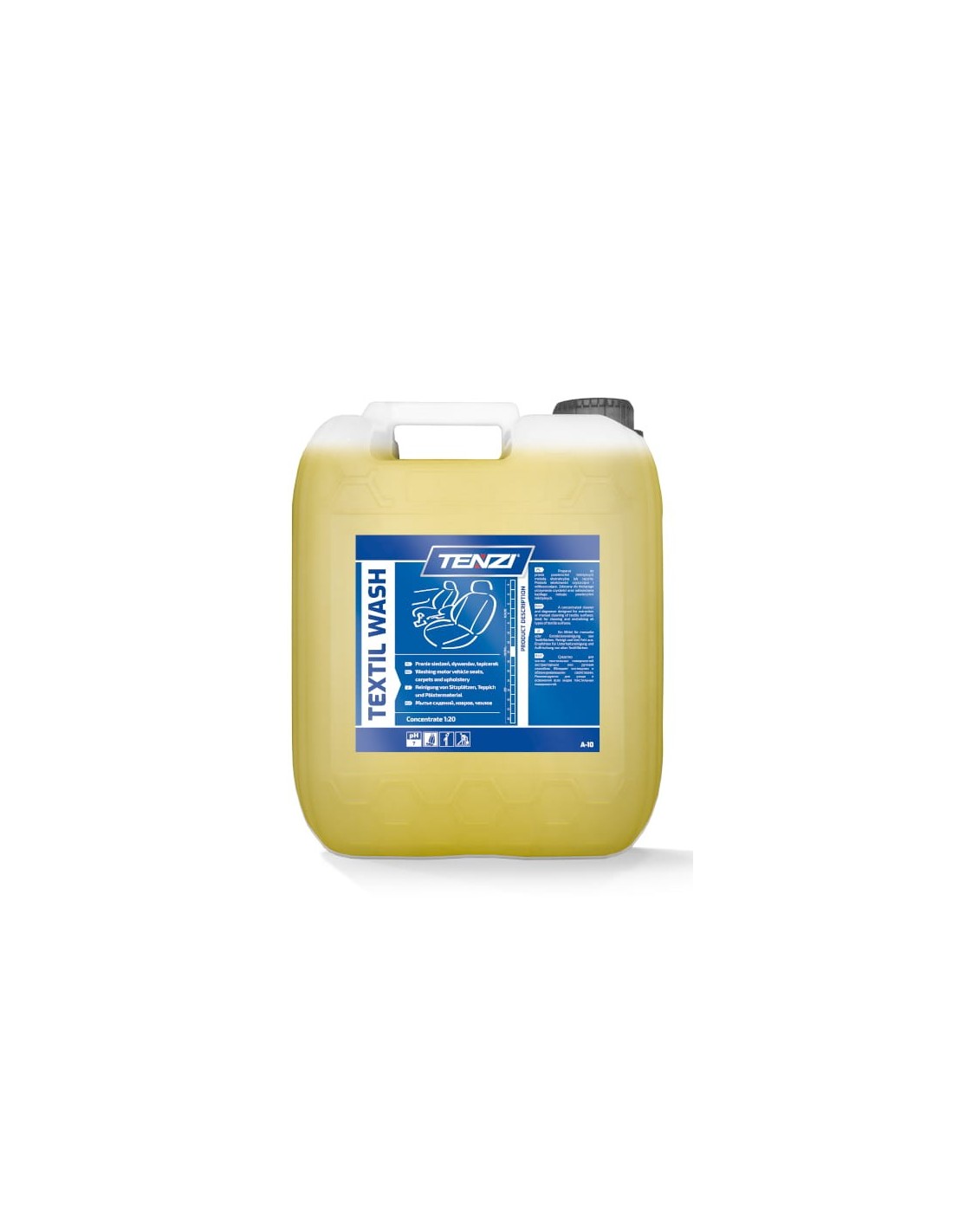 Tenzi Textil Wash – wydajny koncentrat do prania i odplamiania tapicerki. Preparat do prania powierzchni tekstylnych metodą ekstrakcyjną lub ręcznie – szczotką, gąbką. Posiada właściwości czyszczące i odtłuszczające. Ożywia kolory. Zalecany do bieżącego utrzymania czystości oraz odświeżania każdego rodzaju powierzchni tekstylnych.
