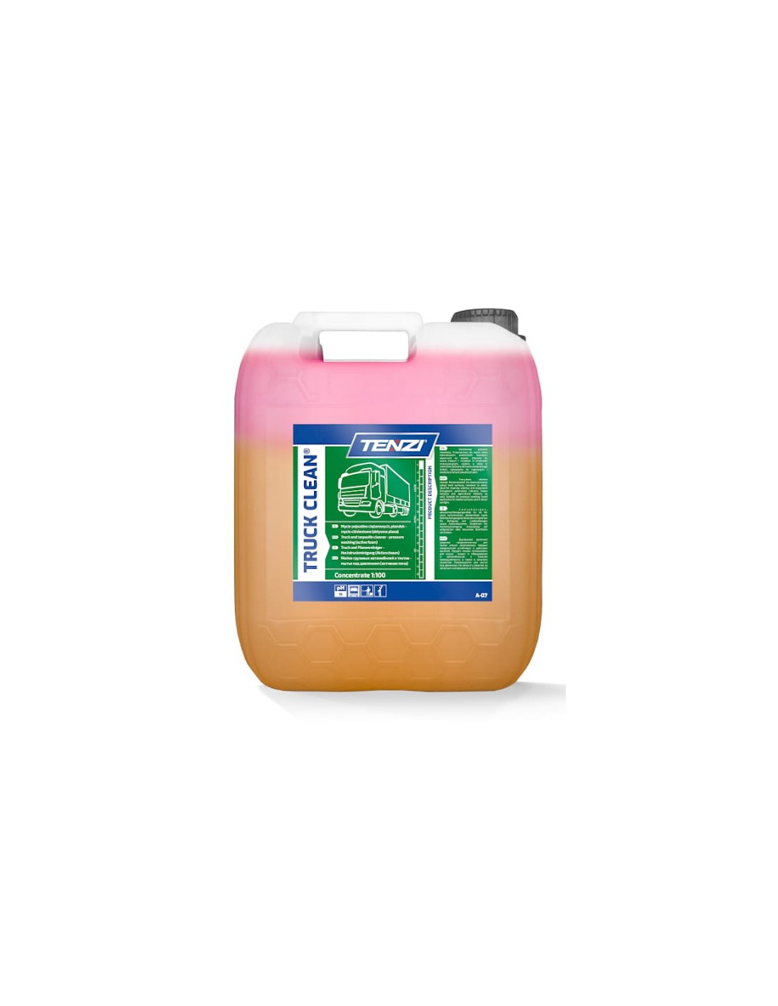 Tenzi Truck Clean to silnie zasadowy koncentrat przeznaczony do mycia skrajnie zabrudzonych powierzchni twardych, odpornych na alkalia. Idealny do usuwania smarów, olejów, błota, brudu drogowego i sadzy z pojazdów ciężarowych, plandek, silników, cystern, wózków widłowych oraz maszyn budowlanych i rolniczych.