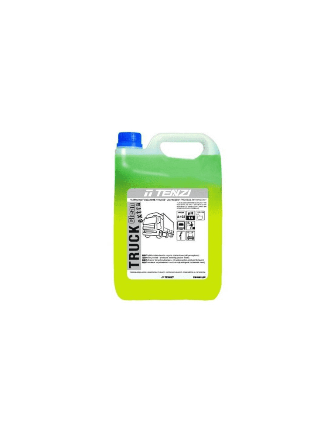 Tenzi Truck Clean Extra to silnie zasadowy koncentrat (pH 14) przeznaczony do mycia skrajnie zabrudzonych powierzchni twardych, odpornych na alkalia. Jego wzmocniona formuła skutecznie usuwa smary, oleje, tłuszcze, błoto, brud drogowy i sadzę z pojazdów ciężarowych, plandek, silników, cystern oraz maszyn budowlanych i rolniczych. Produkt charakteryzuje się wysoką skutecznością działania oraz silnym pienieniem, co zapewnia efektywne czyszczenie.