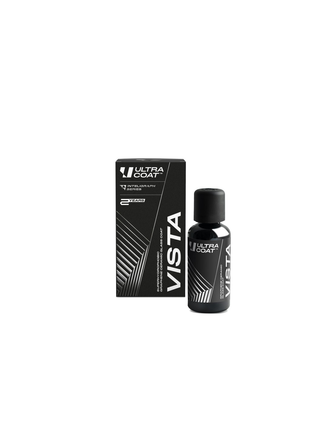 Ultracoat InteliGraph Vista to najbardziej zaawansowana powłoka grafenowo-ceramiczna do szyb, stworzona z myślą o najbardziej wymagających użytkownikach. Jej innowacyjna formuła, oparta na technologii inteligentnych polimerów, zapewnia wyjątkowe właściwości adaptacyjne, nawet w ekstremalnych warunkach. Najważniejsze cechy: Superhydrofobowość: Gwarantuje wysoki kąt styczności kropli z powierzchnią, co zapewnia komfortową jazdę w deszczu z efektem „niewidzialnej wycieraczki” już od prędkości 45 km/h. Trwałość: Powłoka utrzymuje swoje właściwości przez 2 lata i do 30 000 km po aplikacji. Ochrona przed zabrudzeniami: Wysoka gładkość minimalizuje przywieranie brudu, co ułatwia jego usuwanie. Odporność na ekstremalne warunki: Utrzymuje swoje właściwości nawet po długotrwałej ekspozycji na promieniowanie UV, skrajne temperatury i substancje chemiczne o pH 2-13. Prosta aplikacja: Dzięki intuicyjnemu procesowi aplikacji, każdy użytkownik może osiągnąć profesjonalne rezultaty, niezależnie od doświadczenia. Wybierz Ultracoat InteliGraph Vista i ciesz się bezpieczną i komfortową jazdą w każdych warunkach! Pojemność: 30 ml
