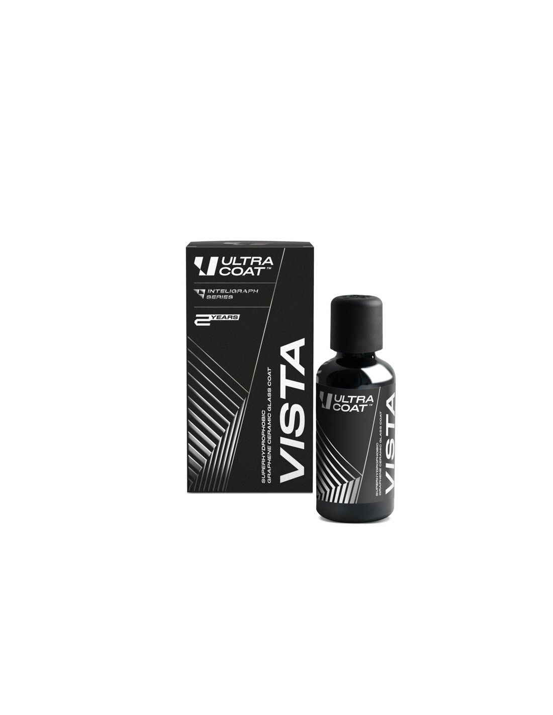 Ultracoat InteliGraph Vista to najbardziej zaawansowana powłoka grafenowo-ceramiczna do szyb, stworzona z myślą o najbardziej wymagających użytkownikach. Jej innowacyjna formuła, oparta na technologii inteligentnych polimerów, zapewnia wyjątkowe właściwości adaptacyjne, nawet w ekstremalnych warunkach. Najważniejsze cechy: Superhydrofobowość: Gwarantuje wysoki kąt styczności kropli z powierzchnią, co zapewnia komfortową jazdę w deszczu z efektem „niewidzialnej wycieraczki” już od prędkości 45 km/h. Trwałość: Powłoka utrzymuje swoje właściwości przez 2 lata i do 30 000 km po aplikacji. Ochrona przed zabrudzeniami: Wysoka gładkość minimalizuje przywieranie brudu, co ułatwia jego usuwanie. Odporność na ekstremalne warunki: Utrzymuje swoje właściwości nawet po długotrwałej ekspozycji na promieniowanie UV, skrajne temperatury i substancje chemiczne o pH 2-13. Prosta aplikacja: Dzięki intuicyjnemu procesowi aplikacji, każdy użytkownik może osiągnąć profesjonalne rezultaty, niezależnie od doświadczenia. Wybierz Ultracoat InteliGraph Vista i ciesz się bezpieczną i komfortową jazdą w każdych warunkach! Pojemność: 50 ml
