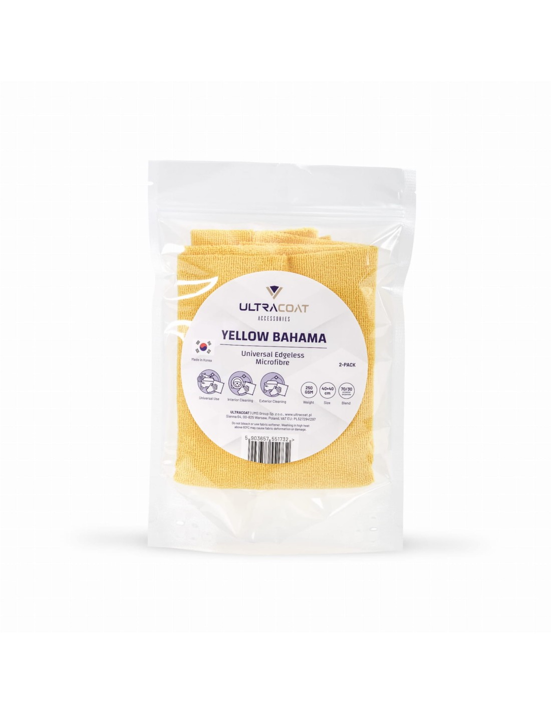 Yellow Bahama to najwyższej jakości bezkrawędziowa mikrofibra o wszechstronnym zastosowaniu. Sprawdzi się podczas prac detailingowych wykonywanych zarówno we wnętrzu, jak i zewnątrz auta. Odpowiednia do czyszczenia tworzyw, skór i elementów wykonanych z dekorów. Jest tez odpowiednia do czyszczenia powierzchni zewnętrznych, ale także docierania sealantów i powłok.