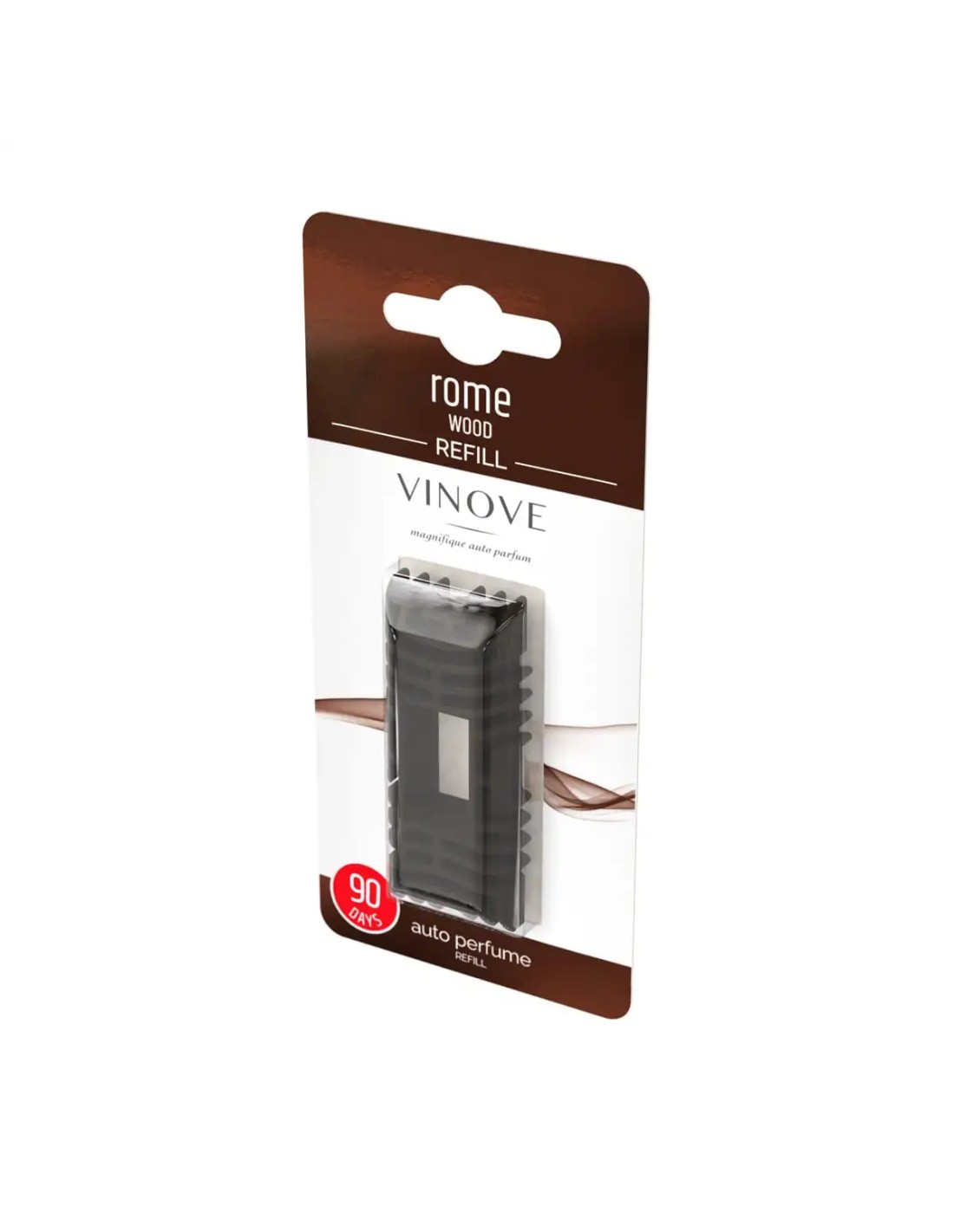 Vinove Refill Rome - to wymienny wkład do ekskluzywnych zapachów samochodowych Vinove. Rome to kwintesencja męskiego zapachu, połączenie siły i trwałości tkwiącej w cedrowym drewnie, oraz delikatności zaklętej w powiewie wanilii, przełamanej szczyptą cynamonu. Nuta głowy: śliwka, cynamon, kminek Nuta serca: szafran, drewno cedrowe, paczula Nuta bazowa: tytoń, drzewo sandałowe, wanilia, skóra Zapasowe odświeżacze przechowuj zawsze w chłodnym i suchym miejscu. Wysoka temperatura i wilgoć mogą osłabić ich intensywność, nawet jeszcze zanim zostaną użyte.