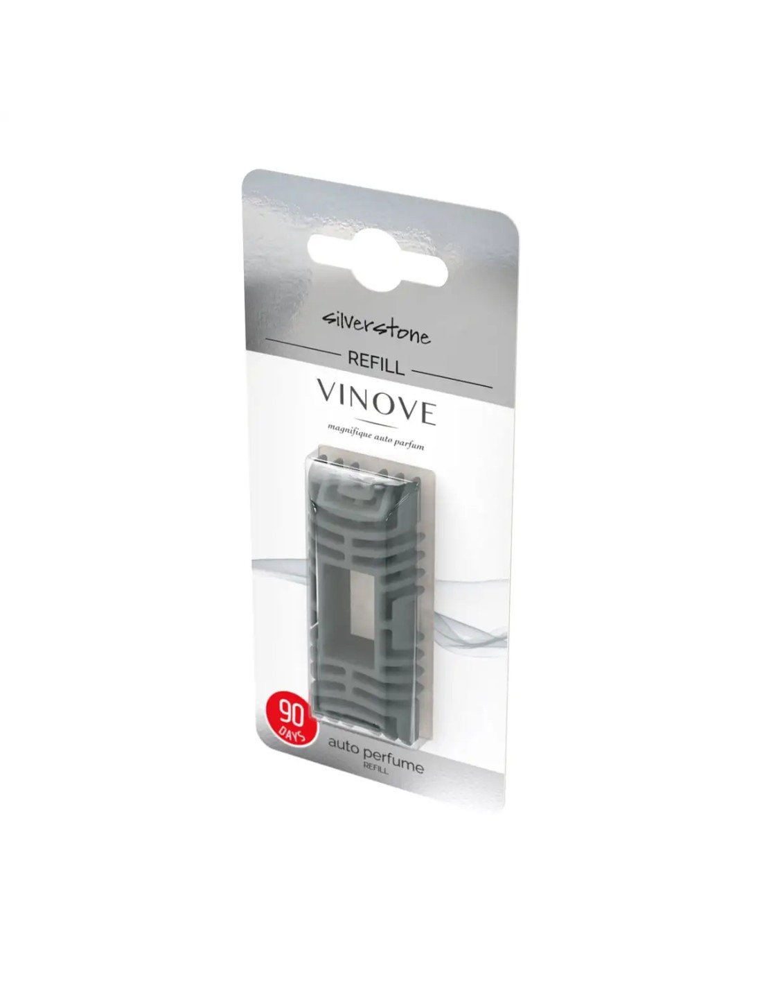 Vinove - wkład do zapachu Silverstone to elegancka i subtelna kompozycja zapachowa, która doda luksusowego charakteru wnętrzu Twojego samochodu, tworząc wyrafinowaną atmosferę. Zapasowe odświeżacze przechowuj zawsze w chłodnym i suchym miejscu. Wysoka temperatura i wilgoć mogą osłabić ich intensywność, nawet jeszcze zanim zostaną użyte.