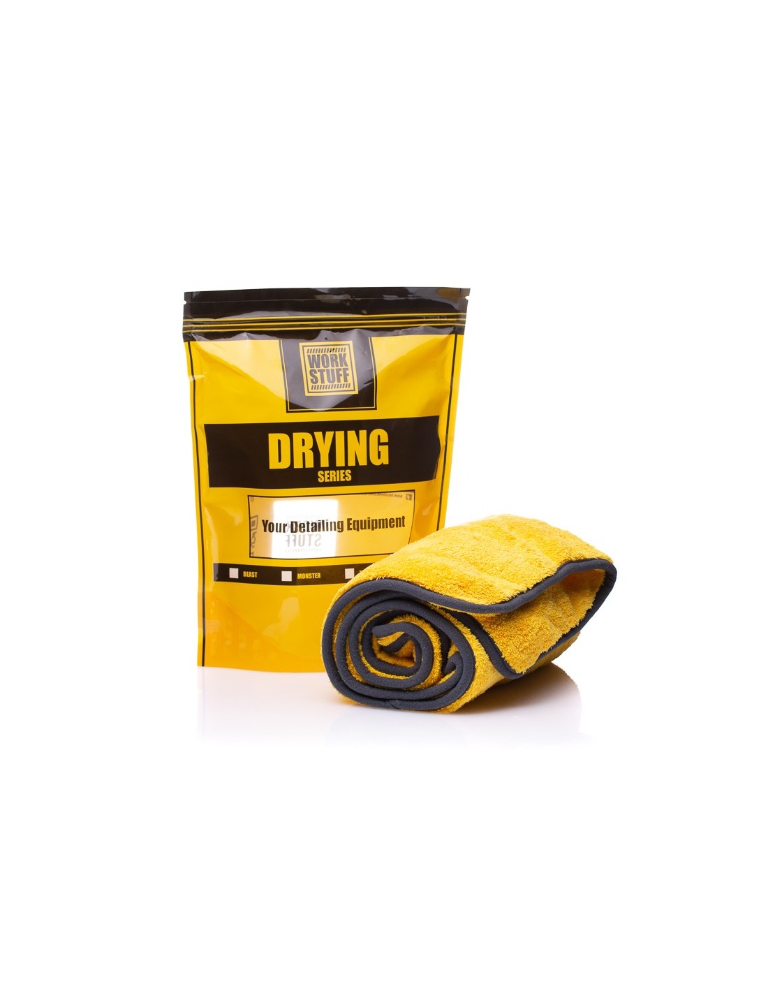 Work Stuff Beast Drying Towel to ręcznik do osuszania pojazdów, zaprojektowany z myślą o profesjonalnych detailerach oraz pasjonatach motoryzacji. Wykonany z wysokiej jakości koreańskiej mikrofibry typu "Plush", oferuje wyjątkową chłonność i delikatność, zapewniając bezpieczne osuszanie powierzchni lakieru bez ryzyka powstawania smug czy zarysowań.