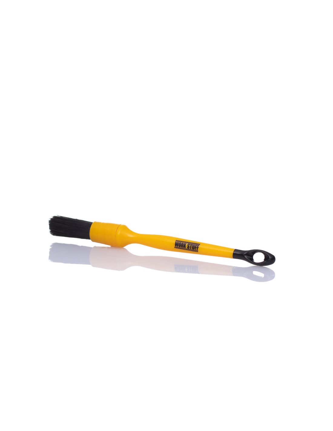 Work Stuff Detailing Brush Black – pędzelek o dużej sile czyszczenia. Świetnie sprawdza się podczas czyszczenia felg, progów, wnęk oraz komór silnika. Z powodzeniem może być wykorzystany przy pracach wewnątrz samochodu w przypadku ciężkich zabrudzeń, ponieważ znakomicie wybiera ciężki brud. Trzonek pędzelka został wykonany z polakierowanego plastiku. Włosie stworzone z syntetycznego materiału. Nie powinien być używany do czyszczenia podatnych na zarysowania elementów takich jak karoseria, elementy piano, felgi piano oraz czarny połysk. Zastosowanie: Do felg Do silnika Do wnętrza auta Rozmiar: 16 mm