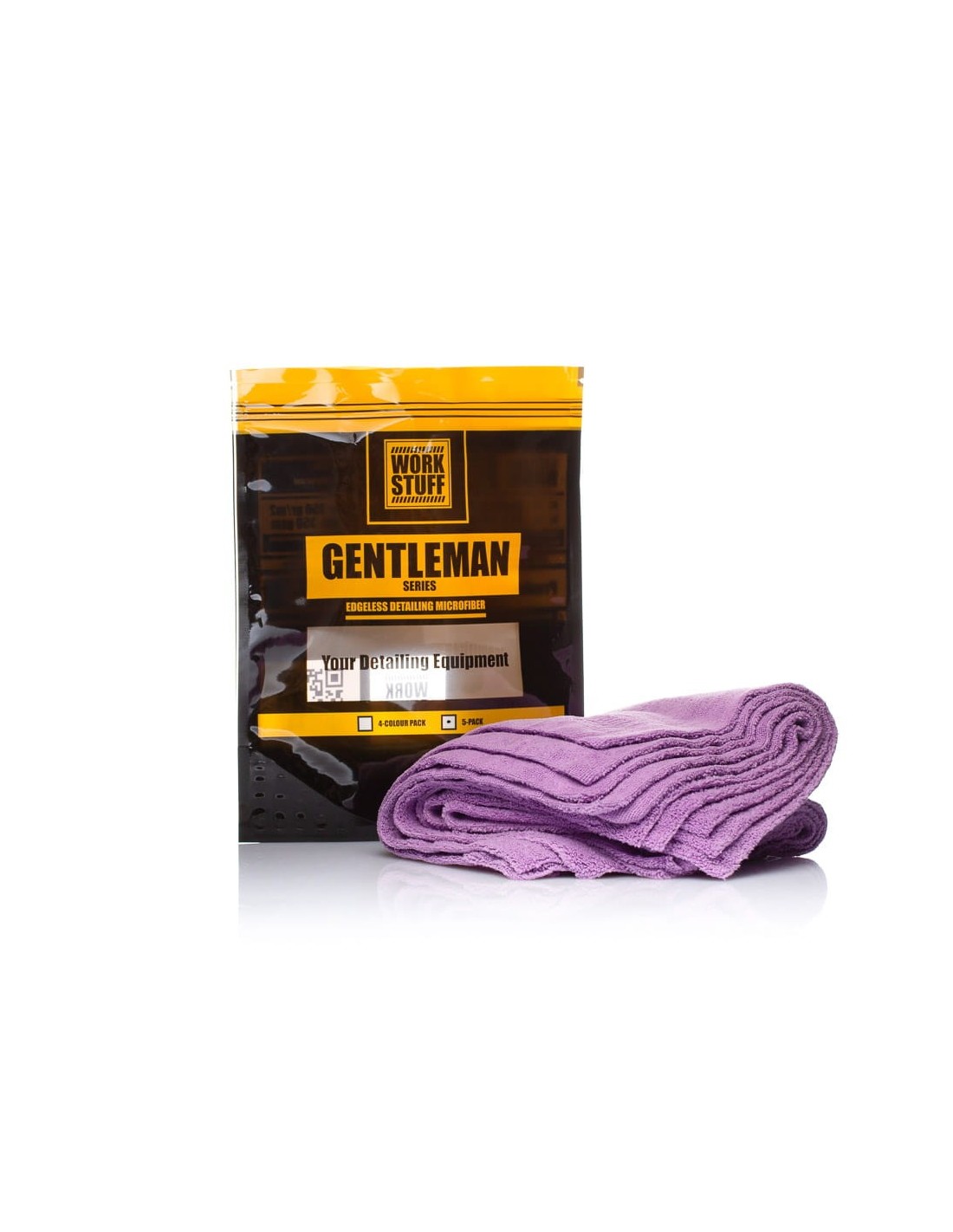 Work Stuff Gentleman Basic 5-pack to zestaw pięciu uniwersalnych mikrofibr bezkrawędziowych w kolorze fioletowym, wykonanych z wysokiej jakości włókien o gramaturze 350 GSM.