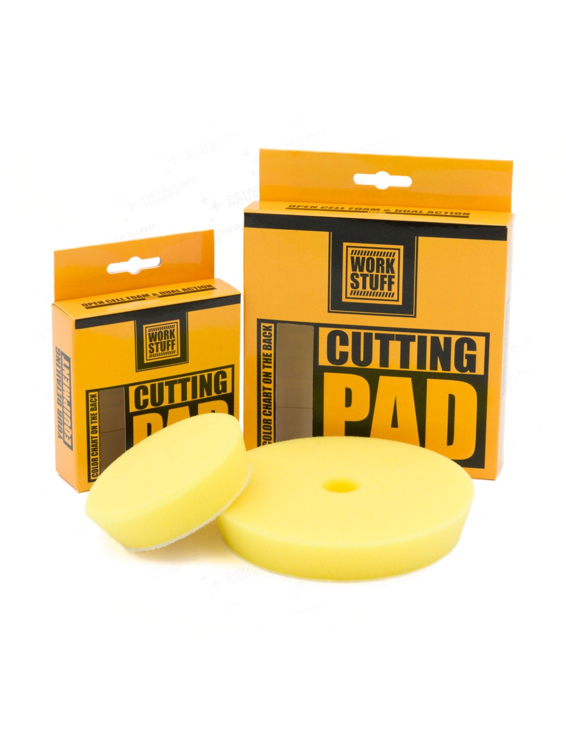 Work Stuff Zestaw Cutting 140 mm i 90 mm to zestaw dwóch padów polerskich przeznaczonych do intensywnego cięcia i usuwania głębszych defektów lakieru. W skład zestawu wchodzą pady o średnicach 140 mm i 90 mm, dzięki czemu można skutecznie pracować zarówno na dużych panelach, jak i w trudno dostępnych miejscach. Twarda, otwartokomórkowa pianka zapewnia wysoką skuteczność cięcia, jednocześnie utrzymując stabilną temperaturę podczas pracy.