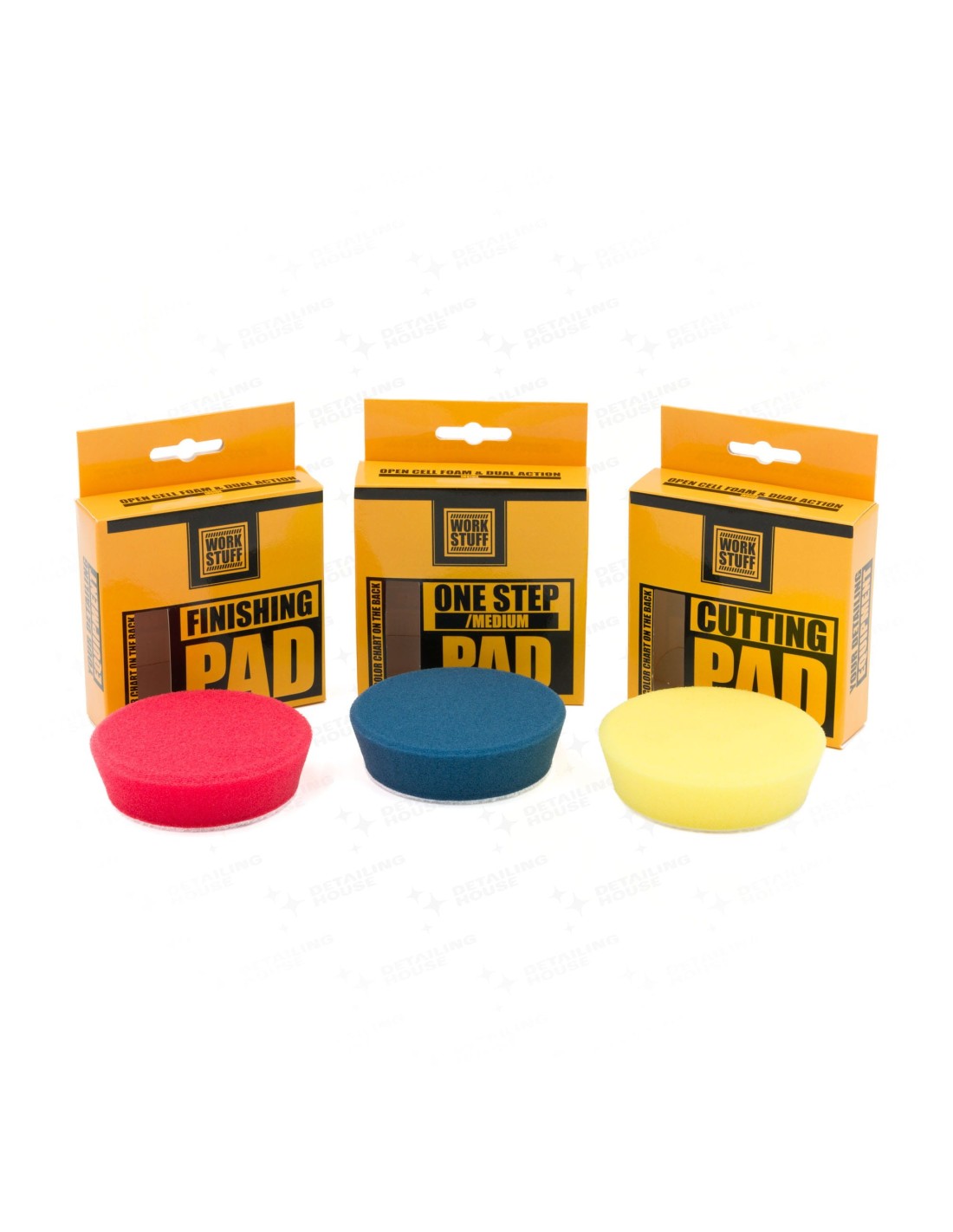 Work Stuff Zestaw Padów 90 mm to komplet profesjonalnych padów polerskich przeznaczonych do pracy z maszynami Dual Action oraz rotacyjnymi.