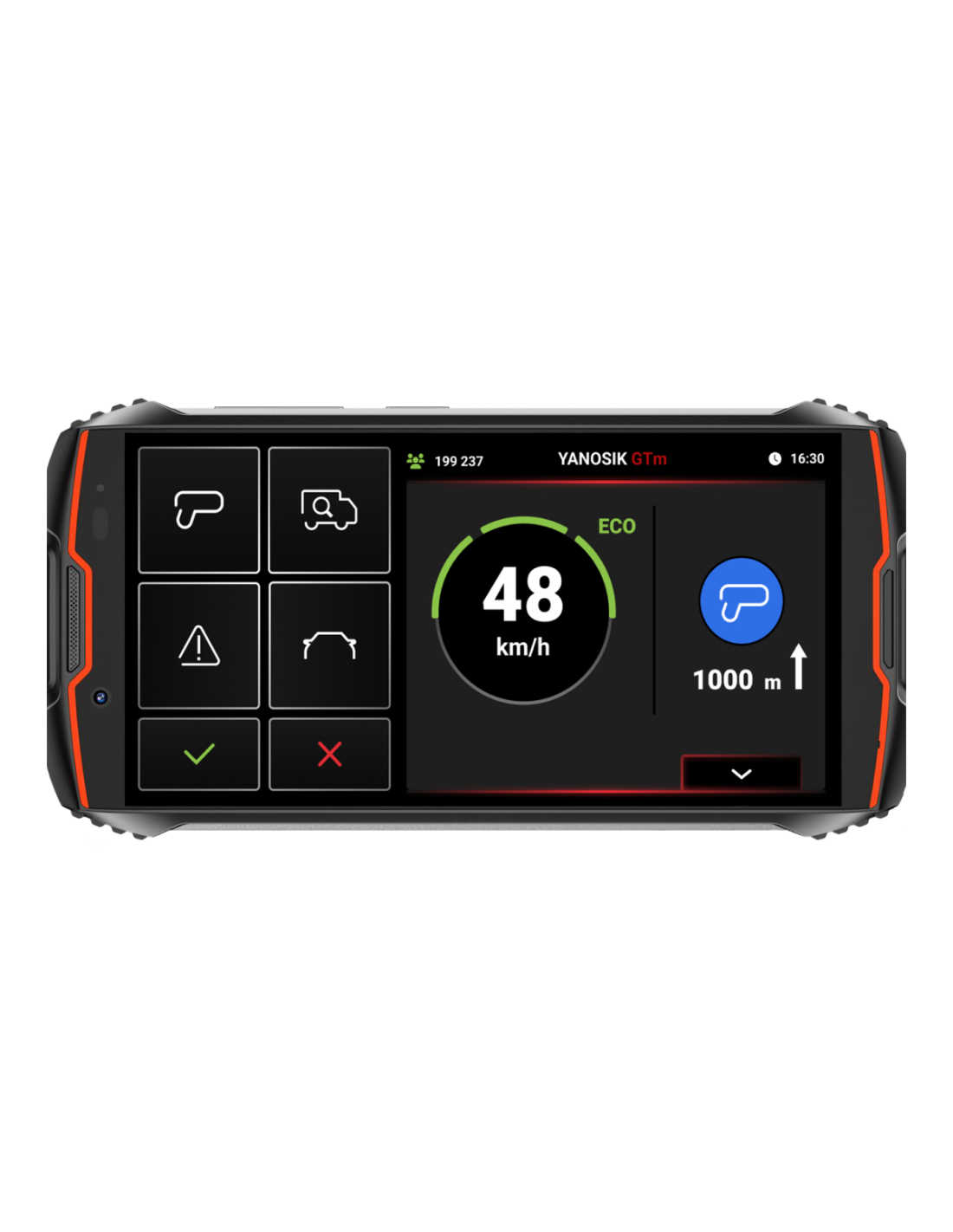 Dotykowy panel – więcej możliwości! Yanosik GTm obsługujesz dotykowo, dzięki czemu interakcja z urządzeniem jest jeszcze płynniejsza! Dodawaj swoje zgłoszenia i odwołuj te nieaktualne jeszcze łatwiej i przyjemniej na dotykowym ekranie. Dopasuj pracę Yanosik GTm do swoich potrzeb, dzięki możliwości obrotu o 180°. Korzystaj tak, jak lubisz najbardziej. OCHRONA PRZED MANDATAMI Jedź bezpiecznie w każdą trasę Dzięki wyraźnym komunikatom na wyświetlaczu Yanosik GTm nigdy nie przegapisz żadnego ważnego powiadomienia z trasy. Bądź na bieżąco z tym, gdzie znajdują się fotoradary, kontrole prędkości i remonty. Możesz również dostosować poziom głośności komunikatów dźwiękowych z trasy. WYTRZYMAŁOŚĆ TO JEGO DRUGIE IMIĘ Naładuj Yanosik GTm i korzystaj bez podłączania do zasilania nawet przez 6 godzin! Dzięki baterii litowo-jonowej, o pojemności 3000 mAh, na jednym ładowaniu przejedziesz nawet kilkaset kilometrów. BAZA FOTORADARÓW Z CAŁEJ EUROPY Zabierz Yanosik GTm w podróże za granicą! Nasze urządzenie będzie Cię ostrzegać o fotoradarach stacjonarnych i odcinkowych pomiarach prędkości w krajach europejskich. Baza urządzeń pomiarowym jest stale aktualizowana. NAJLEPSZY POMYSŁ NA PREZENT Nie musisz mieć żadnej okazji, aby podarować Yanosik GTm bliskiej osobie. To Twoja inwestycja w bezpieczeństwo najbliższych! Mając Yanosik GTm w swoim aucie, Twoi bliscy będą mieli wszystkie informacje z trasy pod ręką, a do celu dojadą bezpiecznie i bez przykrych niespodzianek. POŁĄCZ YANOSIK GTm Z BEZPŁATNĄ APLIKACJĄ Y24 to coś więcej niż zwykła aplikacja drogowa – umożliwia sprawdzenie lokalizacji pojazdu, historii zgłoszeń i przedłużenie abonamentu dla Yanosik GTR. Otrzymasz też alert „Noc-stop” przy nocnym podłączeniu zasilania oraz powiadomienie z trybu Anty-kradzież, jeśli urządzenie wykryje ruch. Specyfikacja Yanosik GTm Wymiary: 119 mm x 58 mm x 12,10 mm Waga: 122 g Wyświetlacz: 16 M kolorów Wymiary wyświetlacza: 540 x 1080 px Bateria: Litowo-jonowa 3000 mAh Wbudowany odbiornik GPS/GPRS: ✔️ Ekran dotykowy: ✔️ Alert antykradzieżowy: ✔️ Zasilanie: V 2.0, type-C Funkcje: Informowanie o kontroli prędkości (również odcinkowej) i fotoradarach, Informowanie o nieoznakowanych patrolach, Informowanie o zagrożeniach (wypadki, remonty, zatrzymany pojazd), Informowanie o ograniczeniach prędkości w przypadku kontroli i fotoradaru, Informowanie o ograniczeniach prędkości na każdym odcinku, Informowanie za granicą o fotoradarach i odcinkowych kontrolach prędkości. Zawartość opakowania: Urządzenie Yanosik GTm, kabel zasilający USB typ-C, naklejka na samochód yanosik.pl, adapter do gniazda zapalniczki 12V, instrukcja obsługi, karta gwarancyjna.