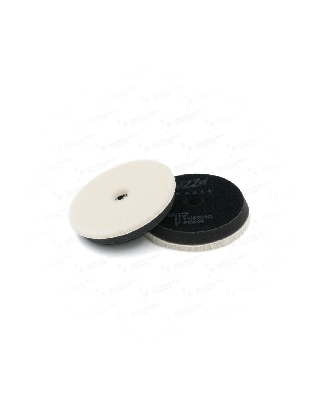 Pad polerski z serii ZviZZer Professional Thermo Polishing System, wykonany z naturalnej wełny merino, dedykowany do maszyn Dual Action. Oferuje najmniej agresywny profil cięcia wśród wszystkich padów z serii Thermo Wool Pad’Z i doskonale sprawdzi się podczas usuwania umiarkowanych zarysowań ze zniszczonych lakierów. Pad został stworzony z wysokiej jakości włókien wełny merino, osadzonych na specjalnej przekładce z materiału. Do regulacji siły cięcia zastosowano innowacyjną gąbkę ZviZZer Thermo Black o termo stabilnej strukturze, odporną na działanie wysokich temperatur. Dzięki temu pad nie nagrzewa się w trakcie pracy i utrzymuje swoje właściwości tnące, co przekłada się na długą żywotność. Połączenie naturalnej wełny i pianki Thermo gwarantuje doskonałe właściwości tnące, idealne do usuwania zarysowań o średniej głębokości z powierzchni lakieru. Pad ten doskonale współpracuje z pastą ZviZZer HC4000, a dla osiągnięcia profesjonalnych rezultatów zalecamy użycie pasty Thermo HC1500.